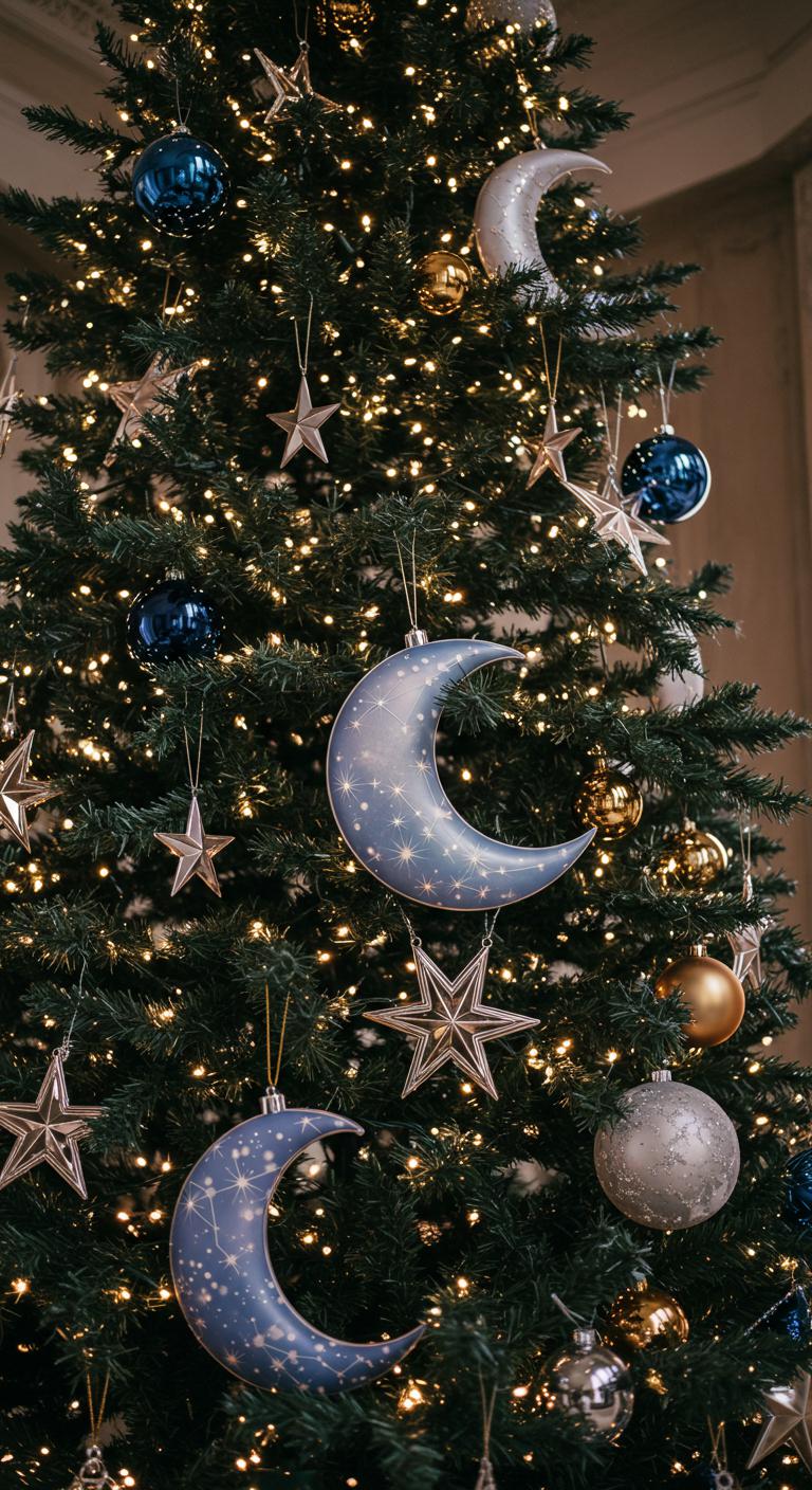Celestial-themed decor is super popular this year! Think stars and moons for your tree decor to evoke a sense of wonder and magic.
