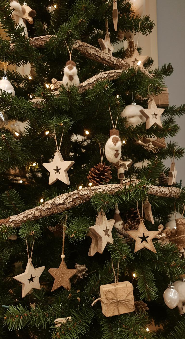 Incorporate star-shaped ornaments or metallic shapes to create a dreamy atmosphere. DIY star garlands can wrap around branches, highlighting this enchanting look.