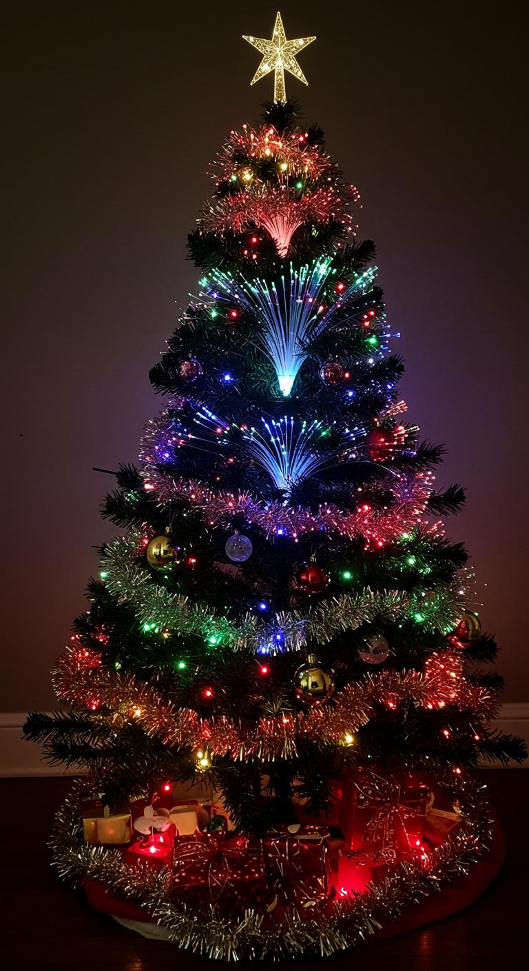 The sparkle of fiber optic lights and tinsel is making a huge comeback! These decorations bring a modern twist to any holiday setup. The dynamic lighting creates a dazzling spectacle in your living space.
