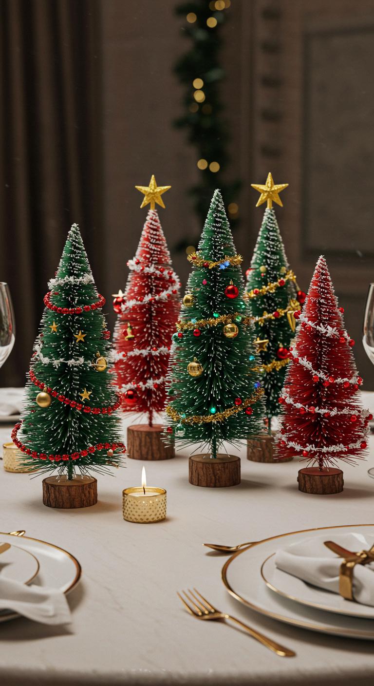 Create a table centerpiece with a tiny tree showcasing ornaments from family vacations. In the living room, opt for a traditional style with red and green. Each tree infuses your home with diverse joy and nostalgia.