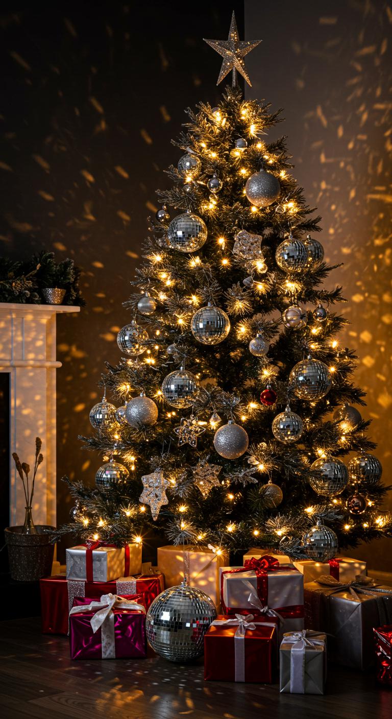 For a festive party vibe, incorporate disco balls and sparkly ornaments into your decor. This theme merges glamour with a hint of modern nostalgia. The reflective surfaces of disco balls create fascinating light displays.