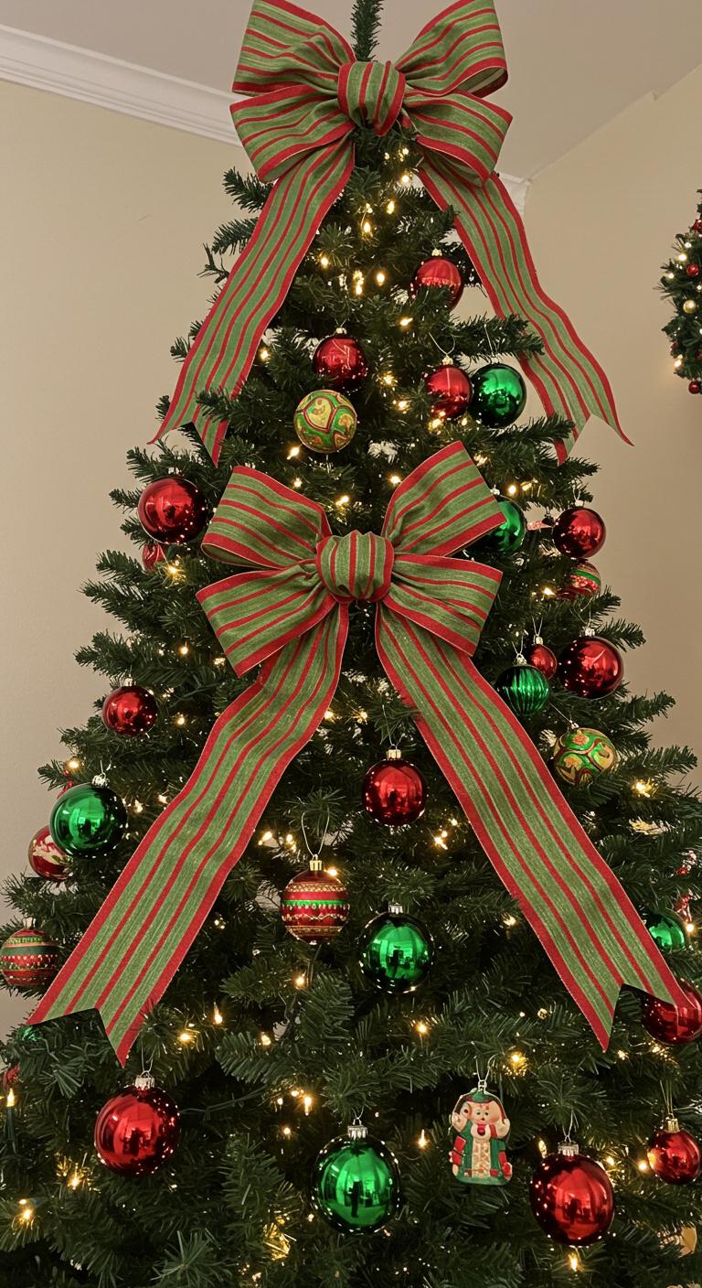 Incorporate oversized bows on both your tree and surrounding garlands. Try attaching them to furniture or staircases too! Crafting your own bows can add a special touch. Utilize vibrant fabric from local stores or even repurpose old scarves.