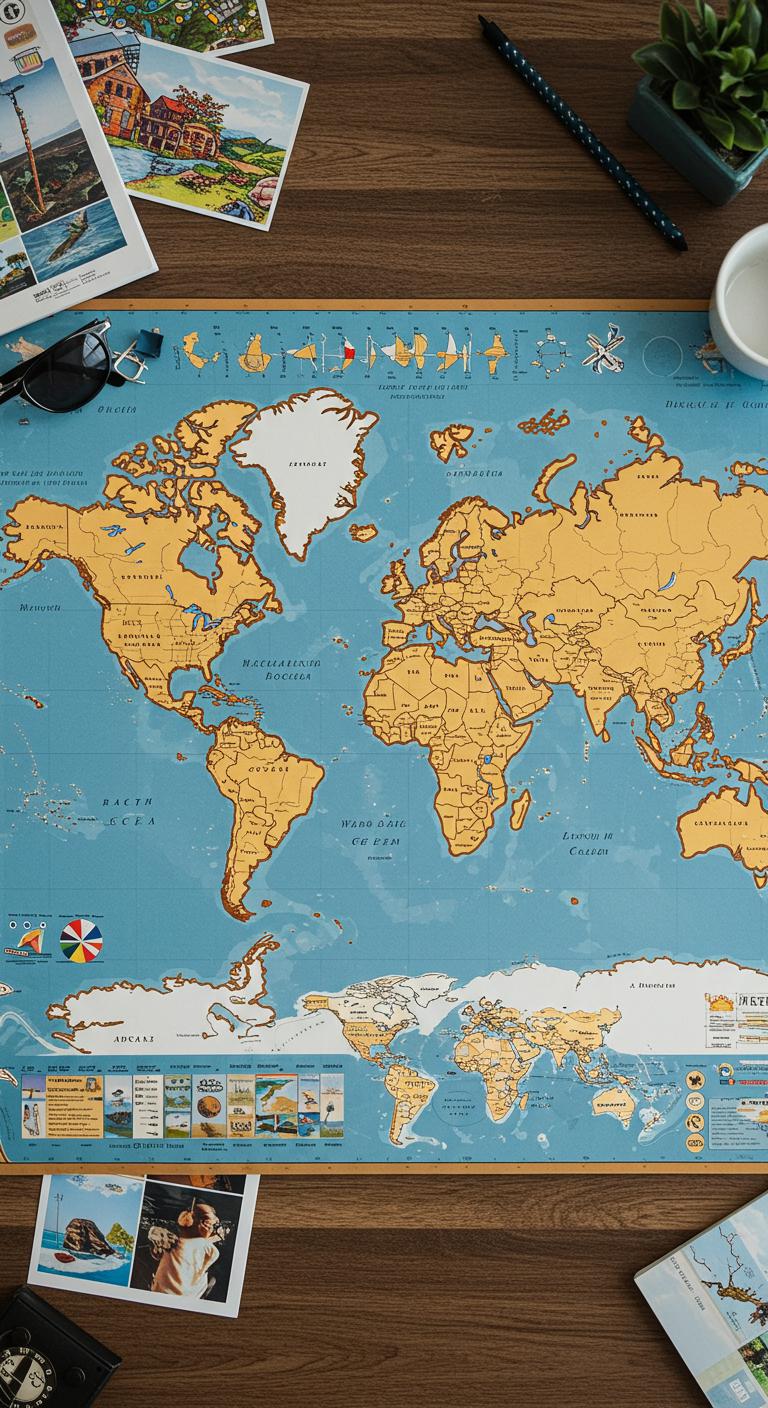 A scratch-off world map is perfect for travel enthusiasts. It adds a fun twist to keeping track of visited places. Many budget-friendly options are available, making it accessible for anyone.