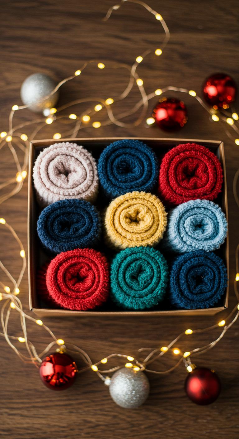 A cozy socks gift set works for everyone. Pick a variety of socks, from fluffy winter ones to funky patterns. You can find sets at various price points. They’re functional and often make you smile.