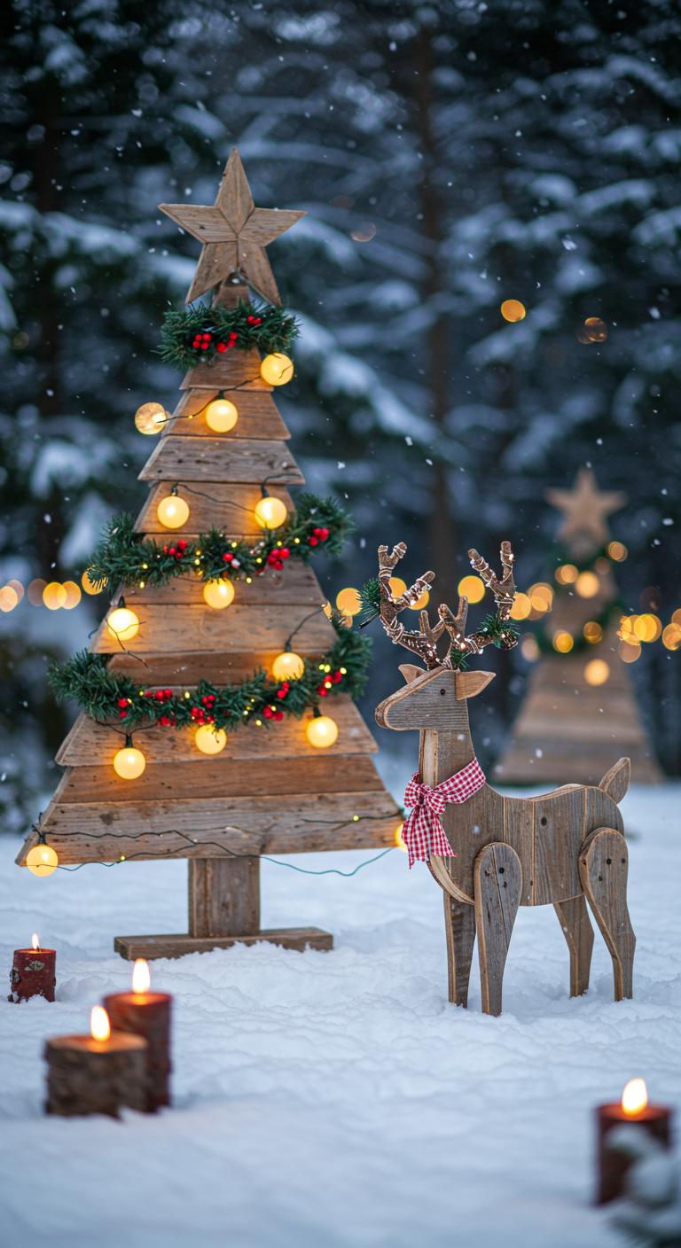 Budget Tip: Use reclaimed wood or leftover pallets for an inexpensive yet striking decoration. Add fairy lights or paint with festive colors for some flair!
