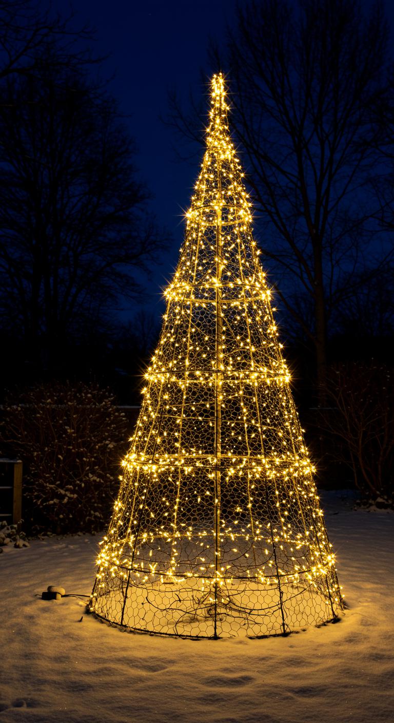Chicken wire is a fantastic medium for crafting eye-catching decorations. You can form sculptures of Christmas trees, stars, or even life-size figures. Once shaped, simply wrap them in LED lights for a stunning glow.