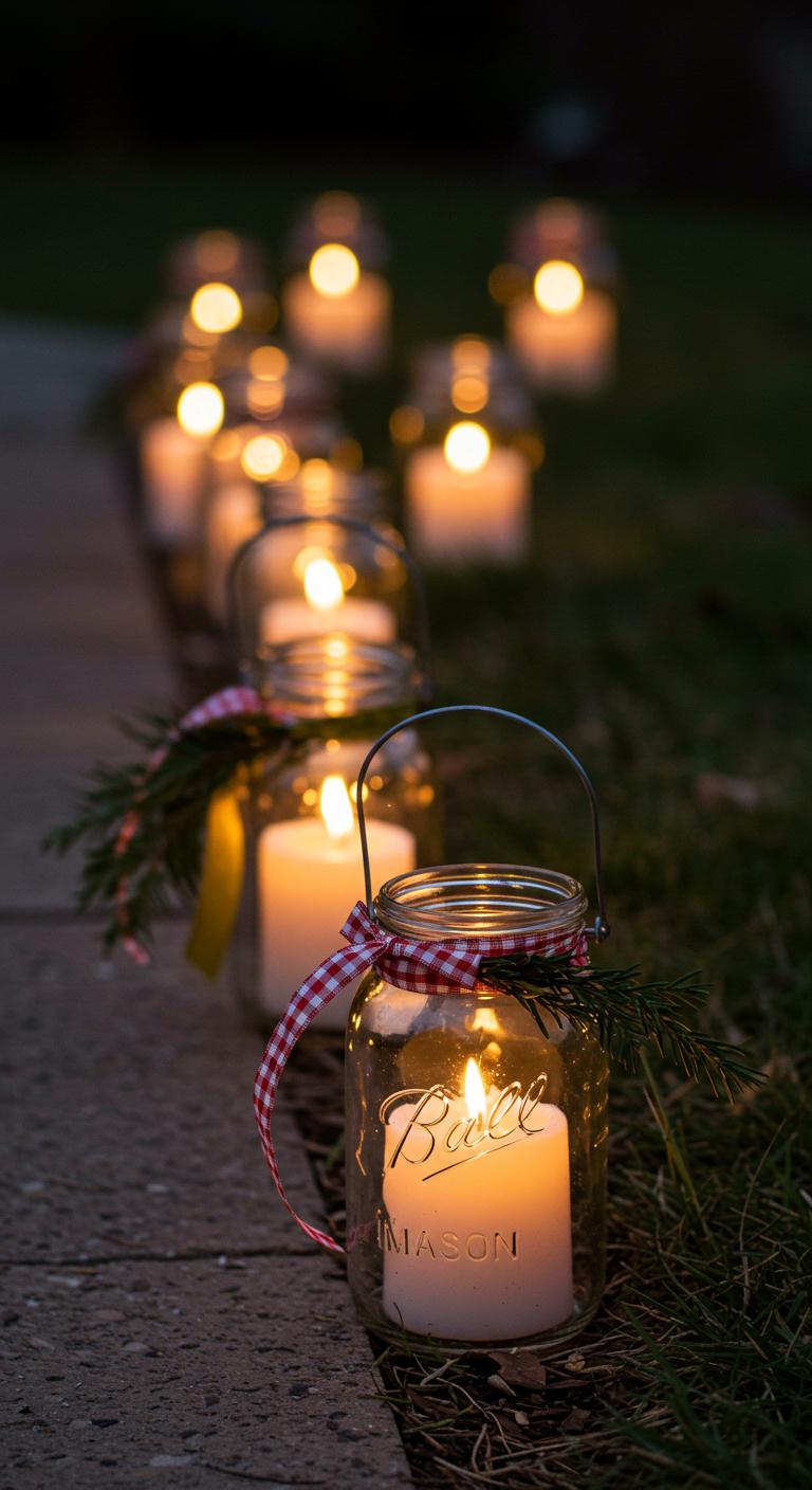 Mason jar lanterns are a charming addition to your outdoor space. Fill jars with candles or fairy lights for a warm glow. You can further personalize them by adding greenery, such as pine branches or holly, around the rim.