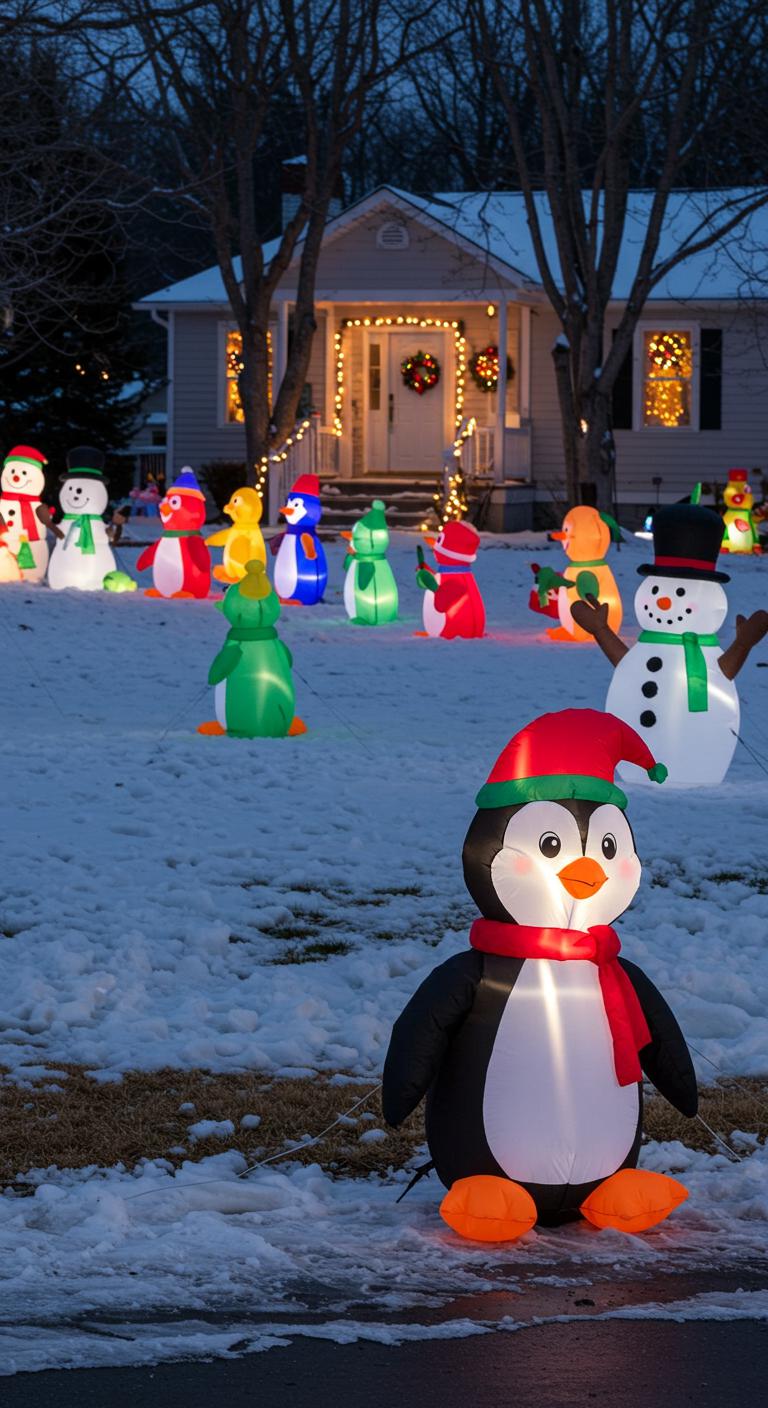 Inflatable holiday animals are a fun way to bring life to your yard. From jovial snowmen to playful penguins, these decorations are easy to set up and provide a cheerful focal point.