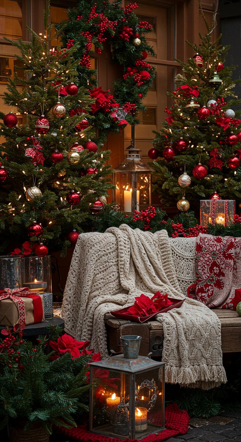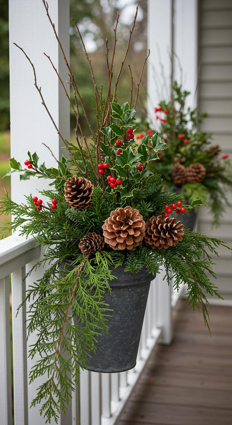 You can hang garlands across porches or drape knitted throws over outdoor furniture to create an inviting space. Fill pots with fresh greenery and ornaments for a whimsical touch!