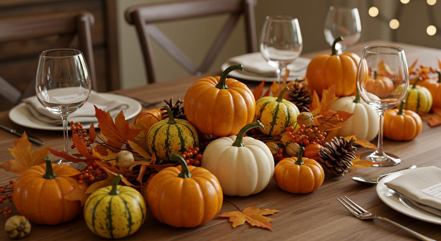 Rustic elements, like a wooden table or a burlap runner, add warmth and balance to the sleek finishes. Arranging white pumpkins alongside these accents creates a cohesive look, harmonizing modernity with tradition.