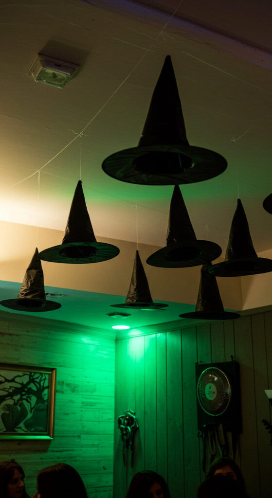 However, caution is advised with low-hanging hats in crowded spaces. Employing a small fan can introduce subtle movement, further amplifying the enchanting effect of these floating witch hats.