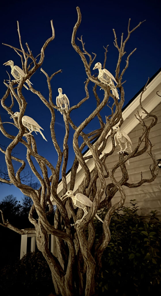 Twisted, Gnarled Tree Branches Decorated With Skeletal Birds