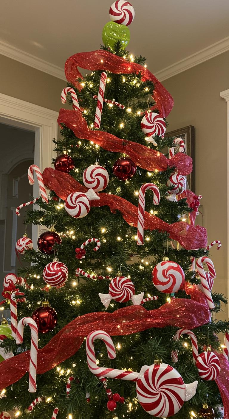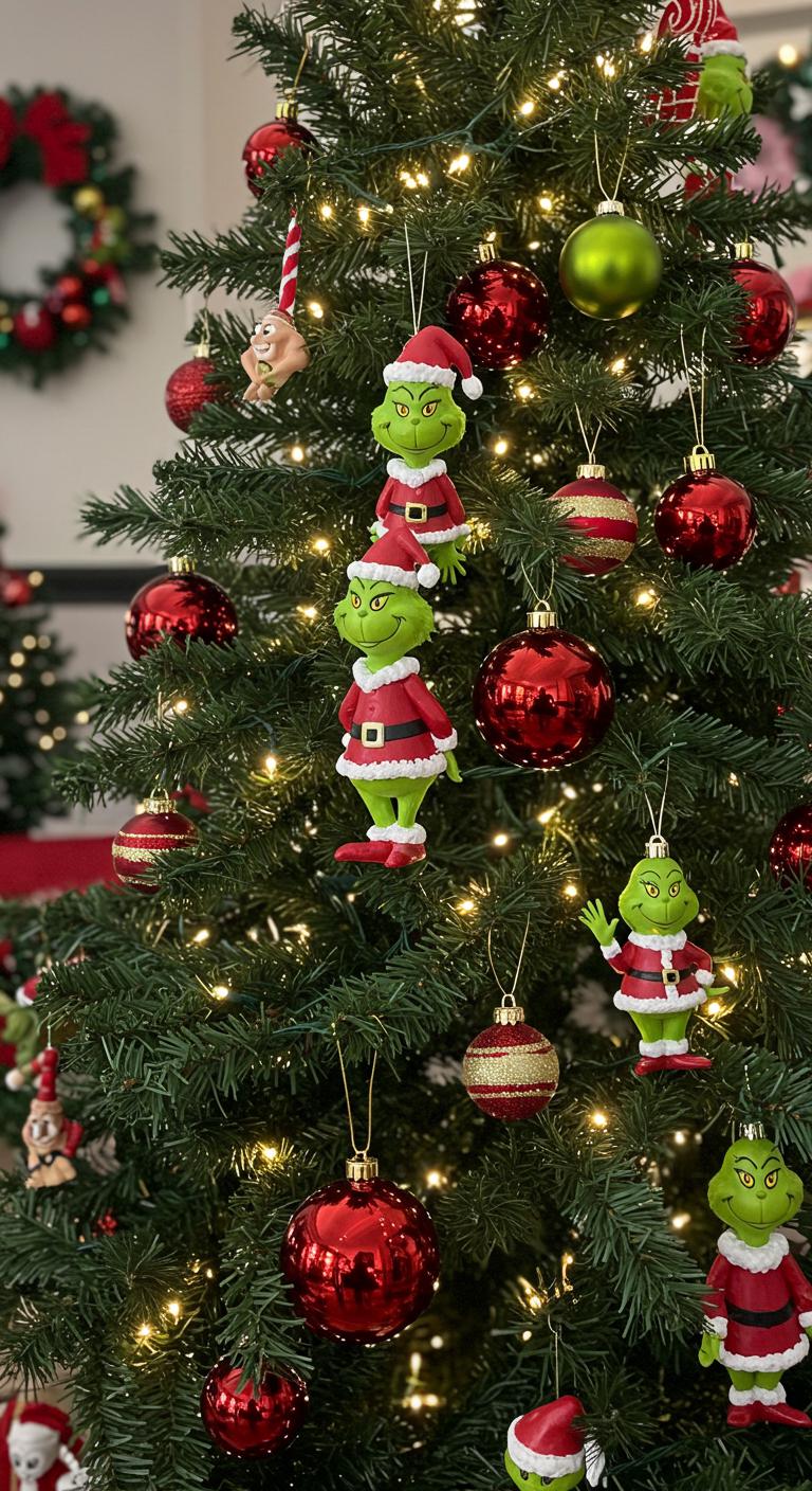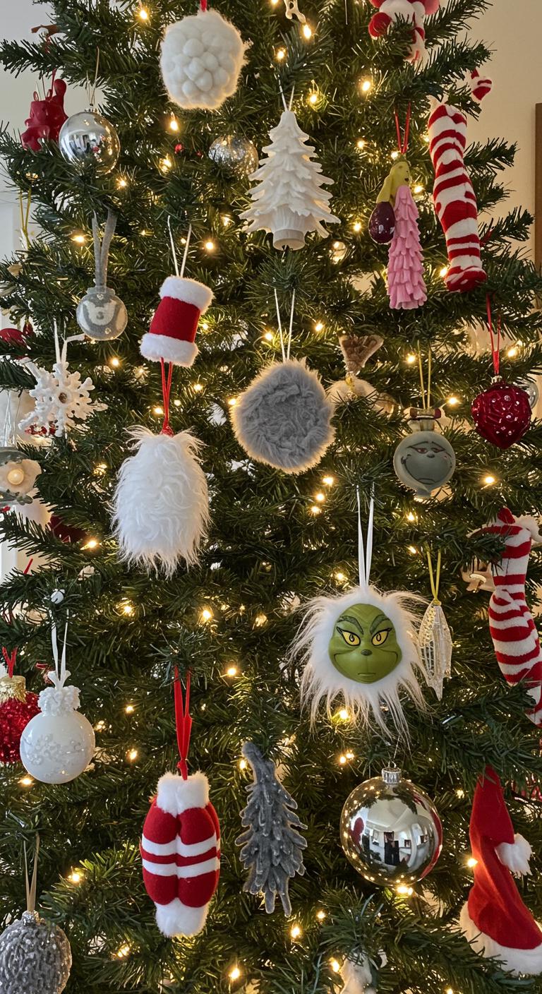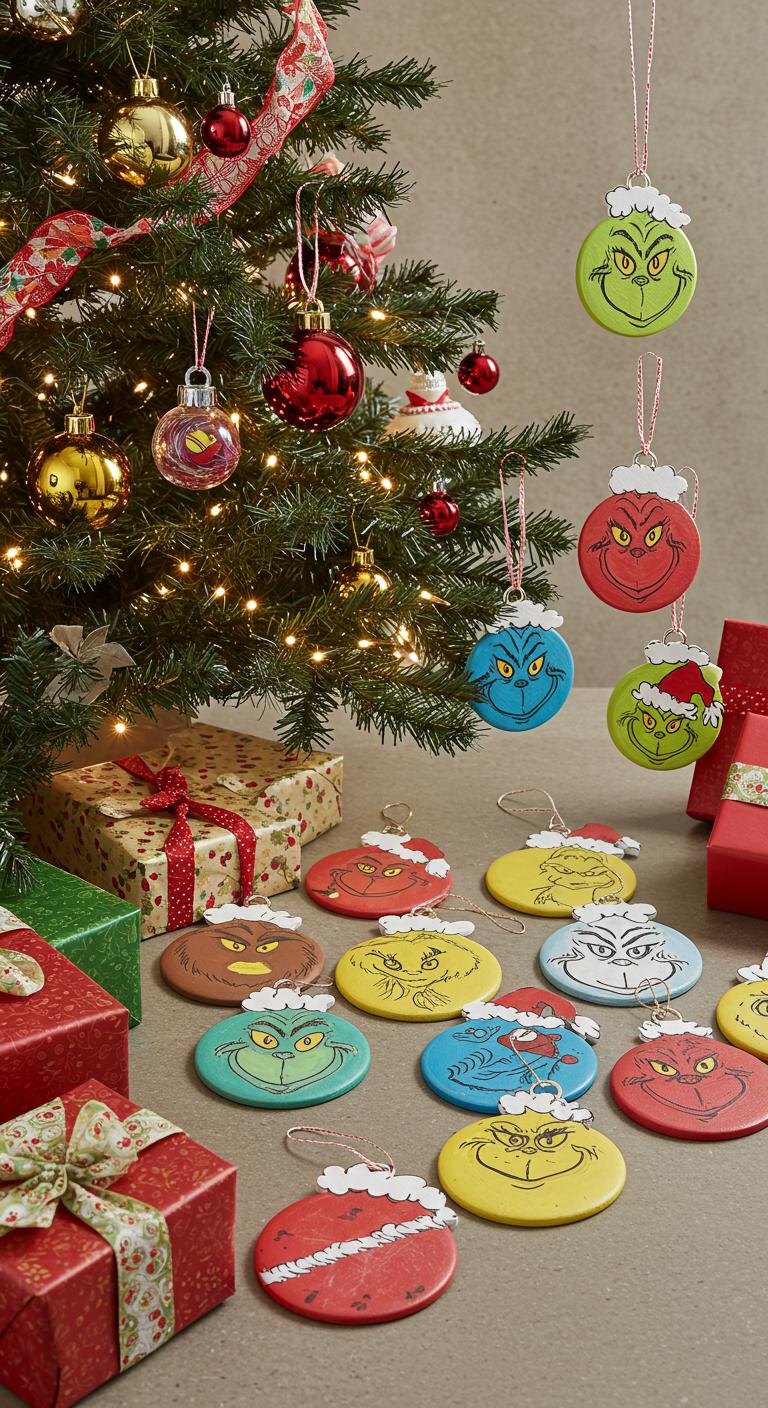 Candy canes are a classic holiday treat that fits perfectly into your Grinch-themed decor. Hang candy canes alongside your other ornaments for a cheerful touch. You can use traditional red and white ones or customize them in different colors. For a fun DIY project, create candy cane ornaments using colored pipe cleaners and beads. This addition introduces a playful and festive appeal to your tree while also enhancing the holiday aroma in your home. Everyone will love the sweetness of your Grinch display!