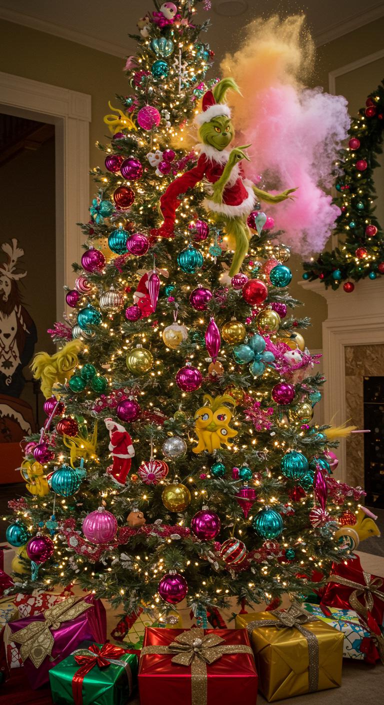 Transform your tree into the star of the show by opting for classic Grinch green. Start with a solid green tree as your base. Use bright red accents like ornaments and ribbons to add complementary color. DIY options are endless! Create your own Grinch ornaments using green felt or paper to cut out whimsical Grinch faces. If you’re on a budget, check local craft stores for inexpensive decorations. Use multi-colored lights throughout the branches for that extra pop! This tree offers a playful vibe while staying true to the character we all love.