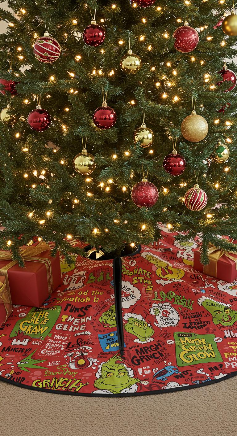 Don’t forget the bottom of your tree! A whimsical tree skirt completes the Grinch look. Opt for skirts adorned with Grinch images or character sayings. Making your own can be a fun and simple project. Use fabric in fun colors and stitch on quotes or images with fabric paint for a personal touch. Alternatively, pre-made options are available at craft stores or online. Rounding out your tree skirt with matching gift wrapping creates a unified, cheerful appearance. Guests will love the thoughtful details all around!