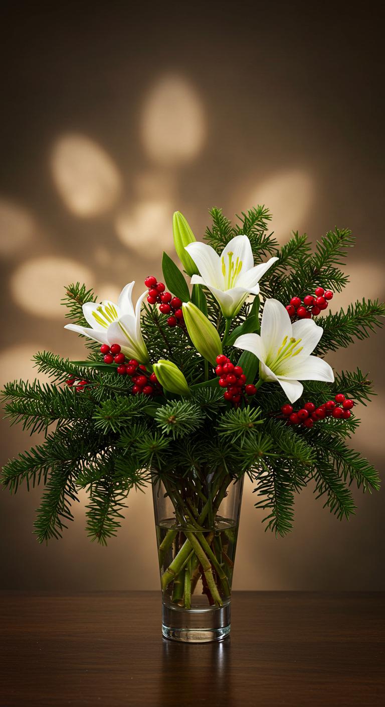 Start your arrangement with a base of evergreen foliage. Pine branches add a classic holiday scent and structure. Choose a variety of greens like cedar or fir for texture. Secure them in a glass vase filled with water or floral foam. Next, add focal flowers like lilies or red roses for color and contrast. Complete the look with accents such as berries or pinecones. This arrangement not only looks good but provides a refreshing aromatic experience. Plus, it’s budget-friendly—most of these materials can be found in local markets. Remember to mist the greenery regularly for longevity.
