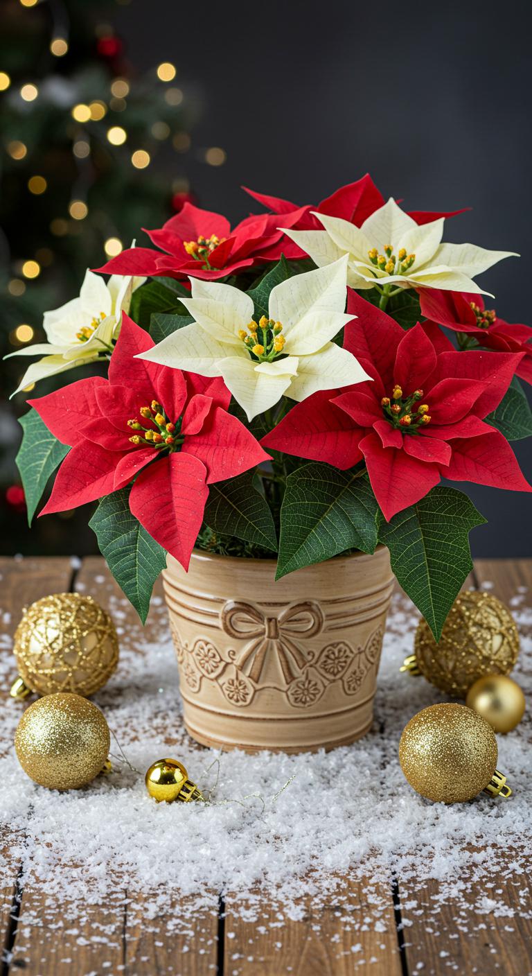 Poinsettias are the quintessential choice for Christmas. Their vibrant colors symbolize the season. To create a simple yet striking arrangement, use multiple pots of varying heights. Pair them with winter greenery such as holly or pine to add depth. You can place these arrangements both indoors and outdoors; just ensure they get enough light. Consider incorporating a few accents like shiny baubles for added brightness. This style is low-cost and easy—most flower shops offer poinsettias at reasonable prices during the holidays.