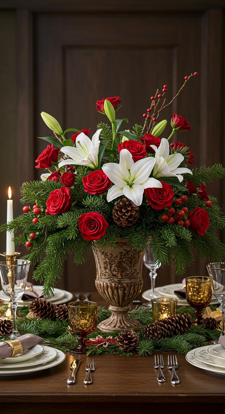 Creating a charming centerpiece can transform your holiday table. Choose a variety of flowers and greens for interest. Start with focus flowers, such as red roses, surrounded by smaller blooms like white lisianthus. Tuck in some evergreens and a few pinecones for texture. Remember to choose a vase that complements your table setting. Budget-friendly options are everywhere; don’t hesitate to explore thrift shops for unique pieces. This DIY project allows you to express your holiday spirit and impress your guests simultaneously.