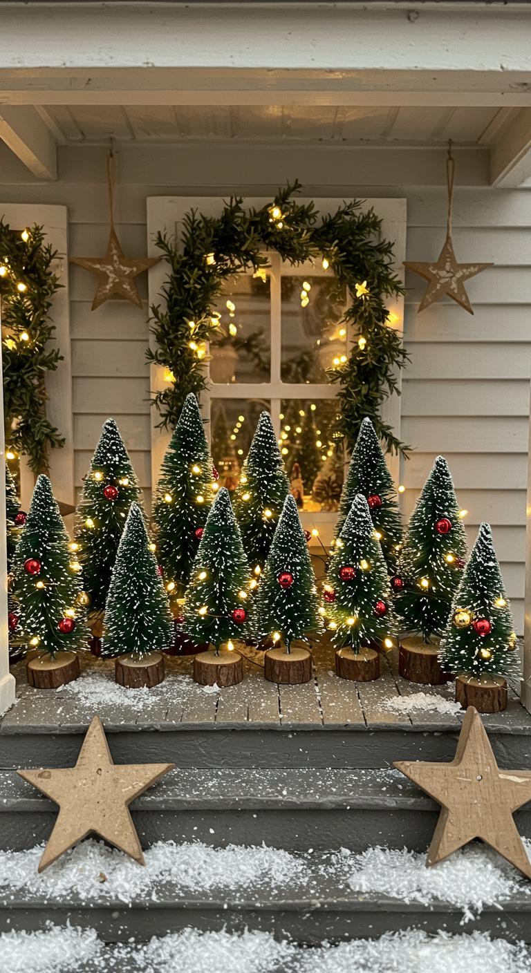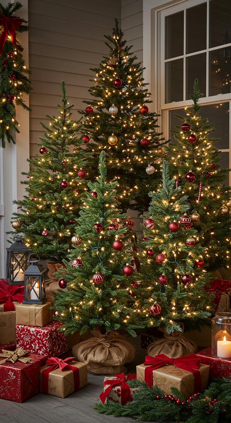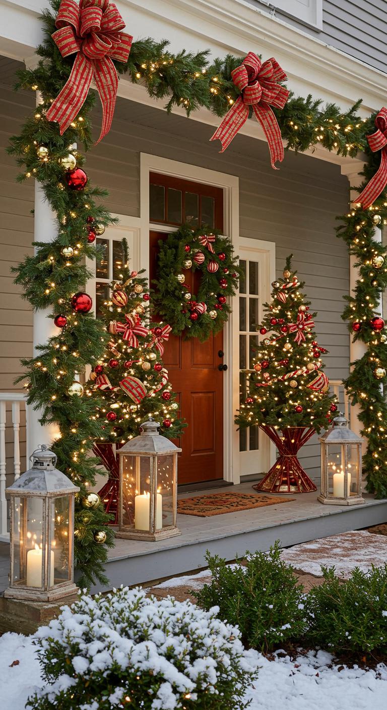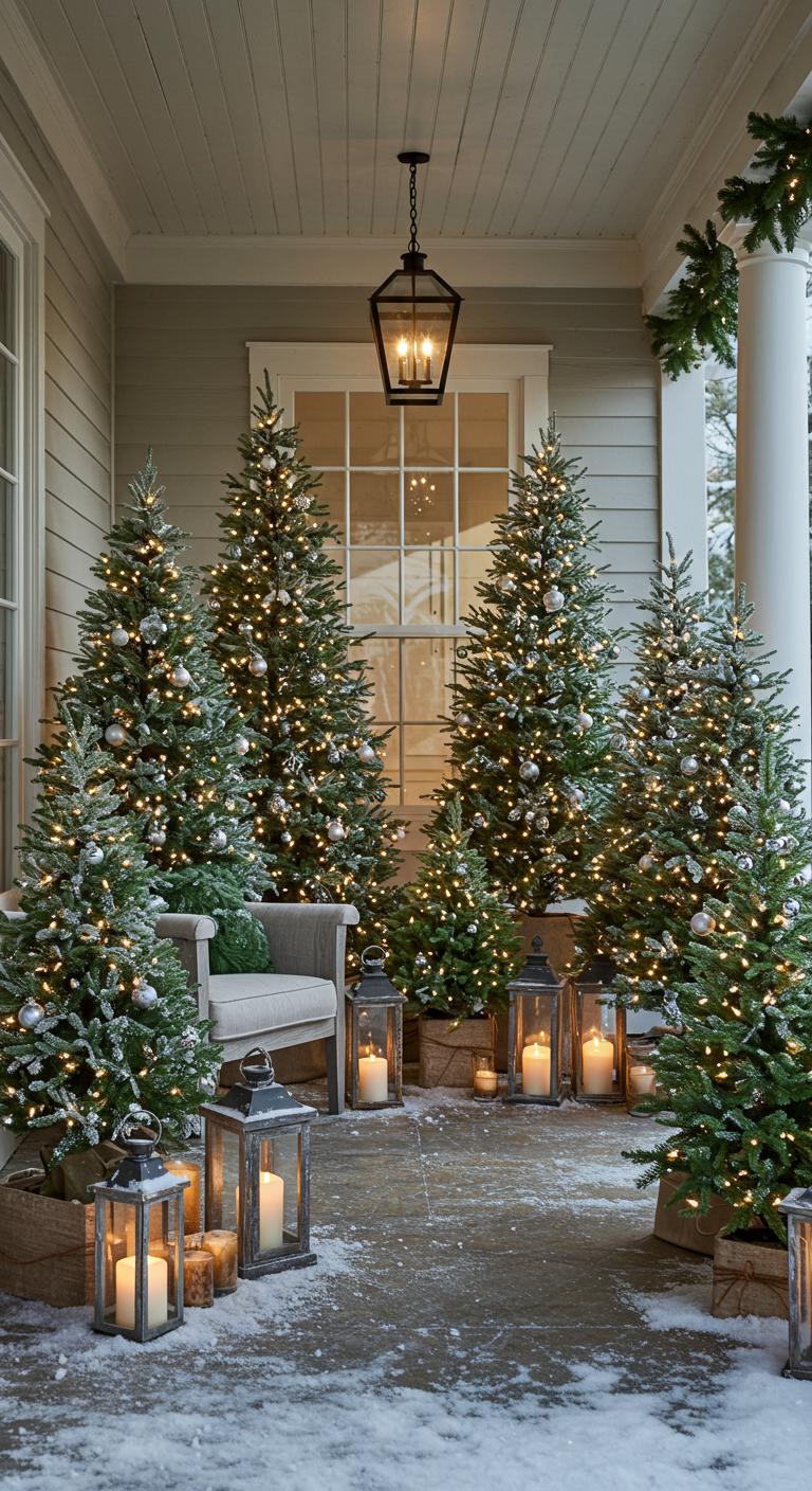 Miniature Christmas trees provide a great solution for limited porch space. Clustered together, these trees make a striking visual impact while taking up minimal area. You can find small trees at craft stores or even use realistic-looking faux ones. Decorate each tree with a unique theme—maybe one with metallic accents and the other with rustic charm. Ensure they fit comfortably in their designated area, using bases like wooden crates or low tables to lift them off the ground. Creating a festooned forest can be a highlight of your holiday decor.