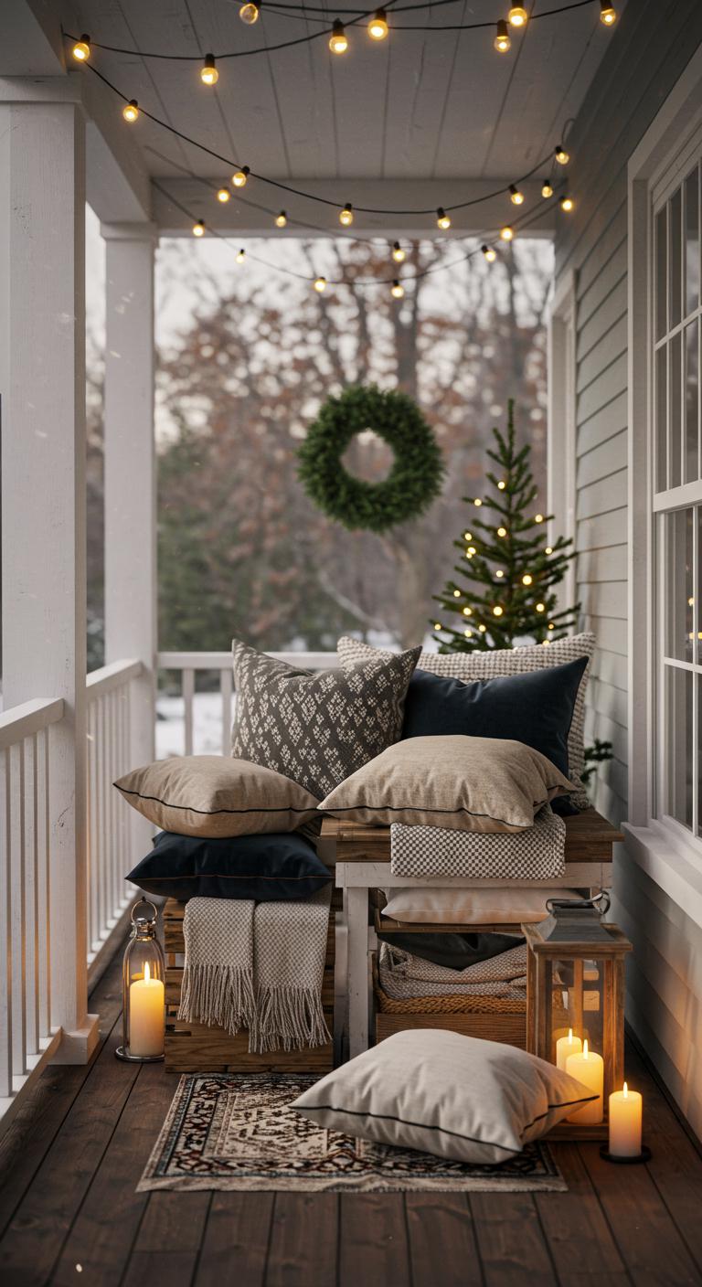 Layering various textures can create a warm and inviting ambiance on your porch. Think cozy blankets, velvety pillows, and wooden accents. Use a range of materials like wicker, fabric, and metal to add depth. Soft textures make the space feel more inviting, encouraging you and your guests to settle in. Don’t hesitate to mix throws made from durable outdoor fabric that can withstand the elements. A snug seat or rock on your porch adorned with inviting cushions can become your new favorite winter spot!