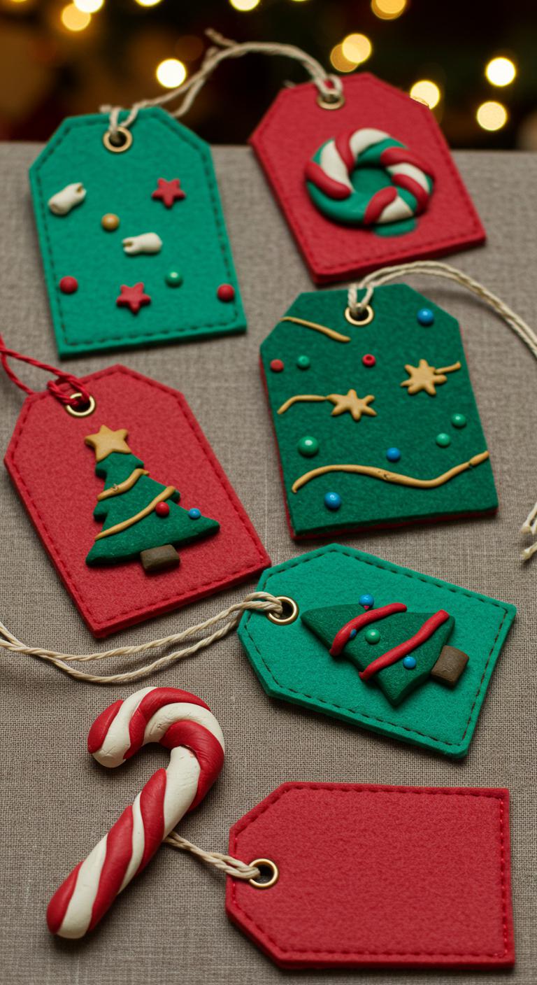 Make your own holiday gift tags using clay and felt. Roll out clay and use a tag-shaped cutter. After baking, paint or stamp on designs. For felt, cut out simple shapes and attach them to cardstock. Write heartfelt messages on the tags. These tags personalize your gifts while keeping costs down. Plus, they serve as a fun family activity. Let kids express their creativity in designing unique tags.
