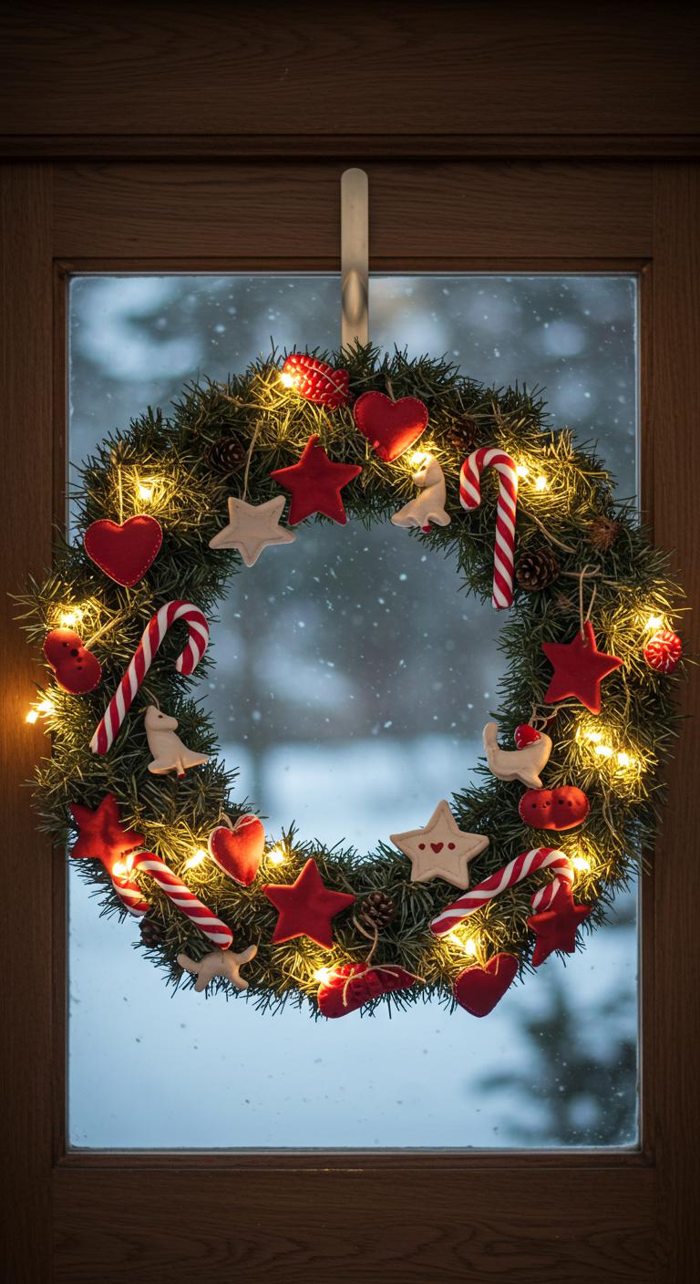 An ornament-wrapped wreath can enhance your door’s festive feel. Use a foam wreath base and attach your handmade felt and clay ornaments. Hot glue the ornaments in an artistic pattern. Add ribbons or twine for a lovely finish. This project is a striking display piece without much expense. Encourage family members to contribute their favorite ornaments for a unique touch!