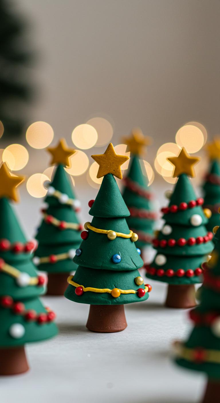 Create miniature clay trees to add charm to your holiday table. Shape small cones from oven-bake clay, then bake according to instructions. Once cooled, paint or decorate with tiny craft supplies like sequins or beads. Use a small dot of glue for securing decorations. Counter or table settings come to life with these delightful mini trees. They serve as wonderful centerpieces for joyful gatherings.