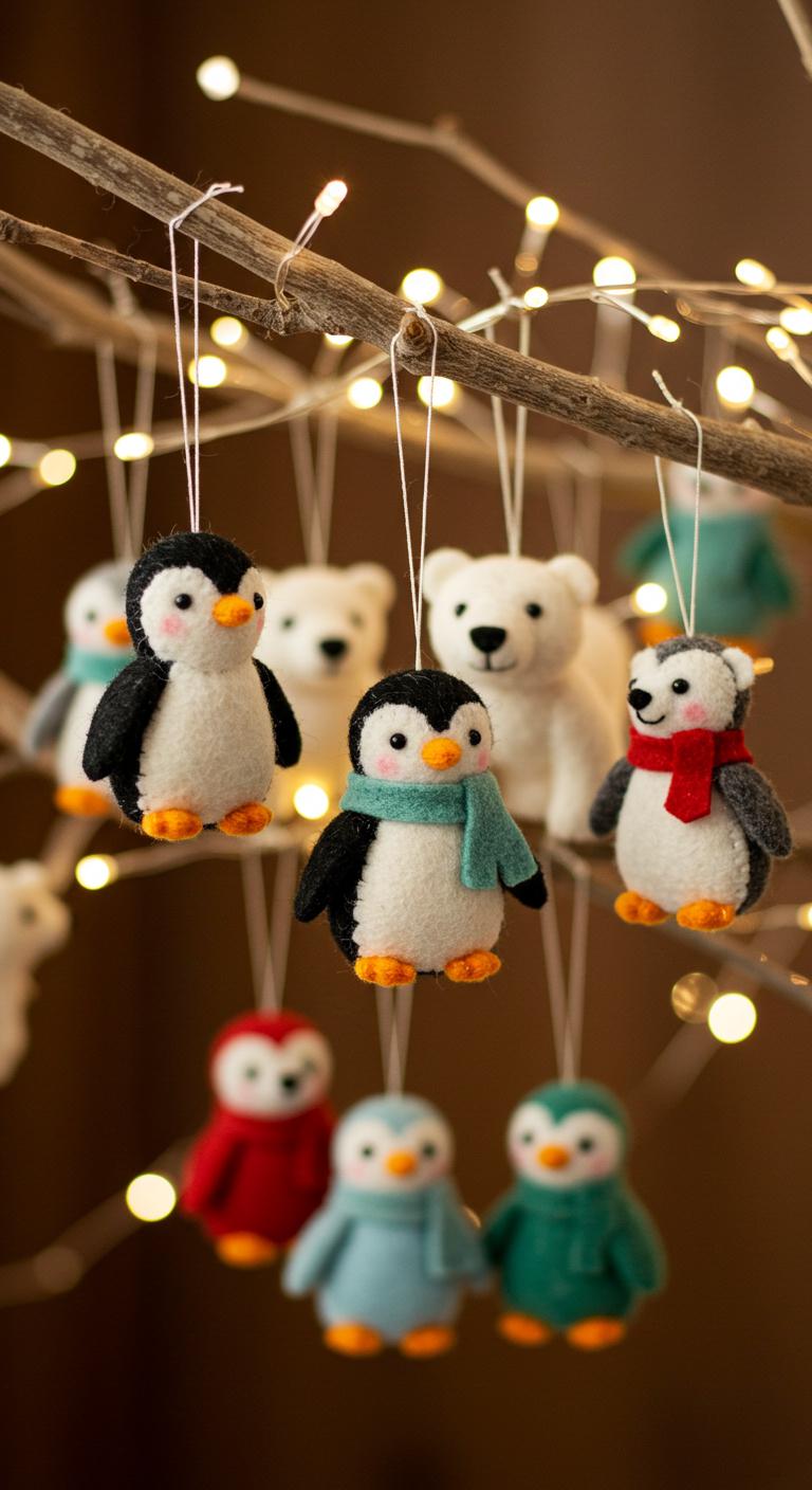 Felt animal ornaments make for delightful holiday décor. Choose your favorite animal shapes, like penguins or polar bears. Cut felt pieces for the body, eyes, and distinctive features. Using a hot glue gun, assemble them into cute characters. These ornaments bring a whimsical touch to your tree or can be gifted. Kids enjoy this project, too, and it encourages creativity.