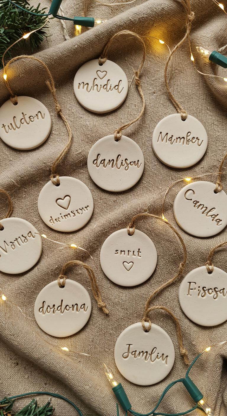 Design personalized clay ornaments for family and friends. Start with a piece of clay, rolling and cutting it into your desired shape, like a heart or circle. Press your letter stamps into freshly rolled clay for names or special messages. After baking and cooling, paint or decorate as you wish. These ornaments serve as meaningful gifts and family mementos, keeping holidays close to heart.