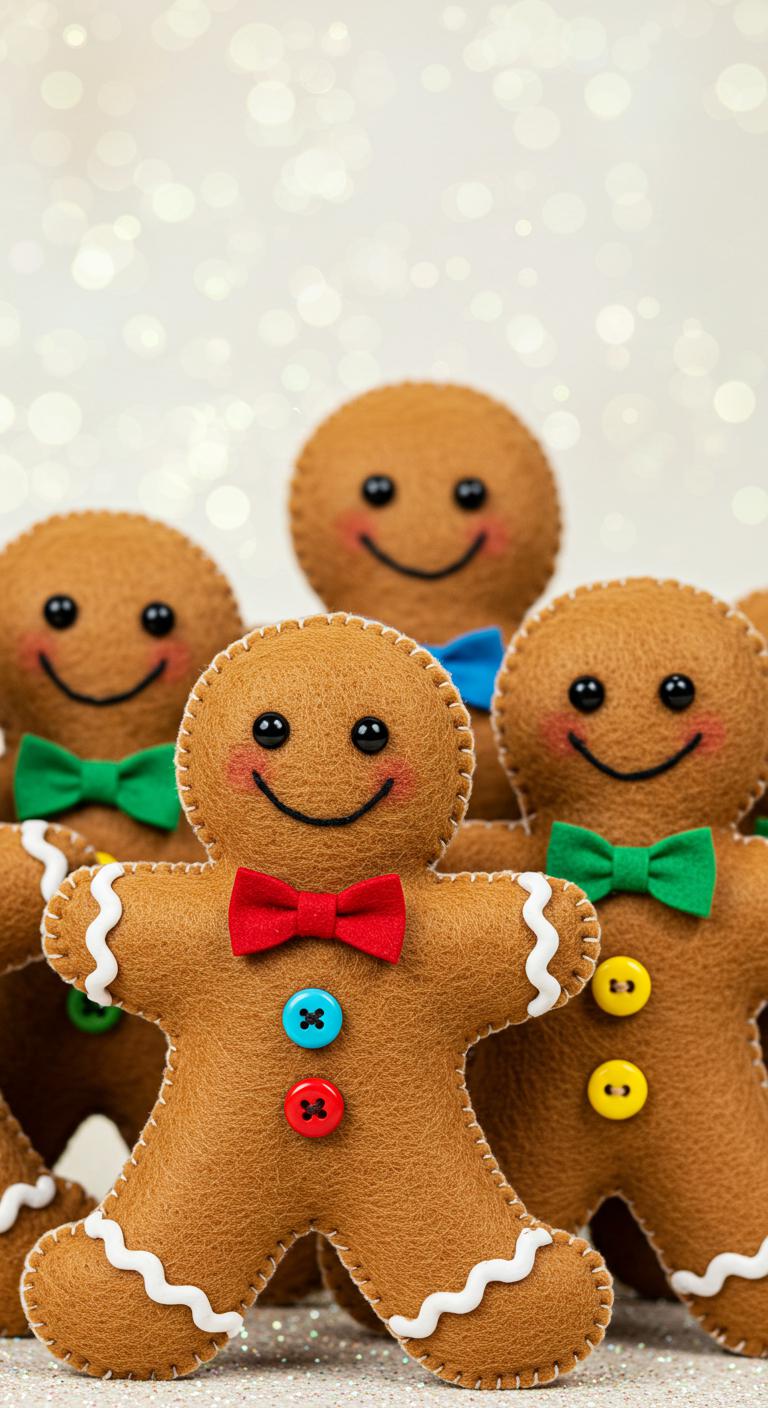 Craft felt gingerbread men with a soft, whimsical feel. Cut out two gingerbread shapes from brown felt and stitch around the edges, leaving a small hole for stuffing. Use bright thread to add details like button eyes and smiling mouths. These gingerbread ornaments brighten your décor and also double as fun keepsakes. Best of all, they are perfect for kids to help create!