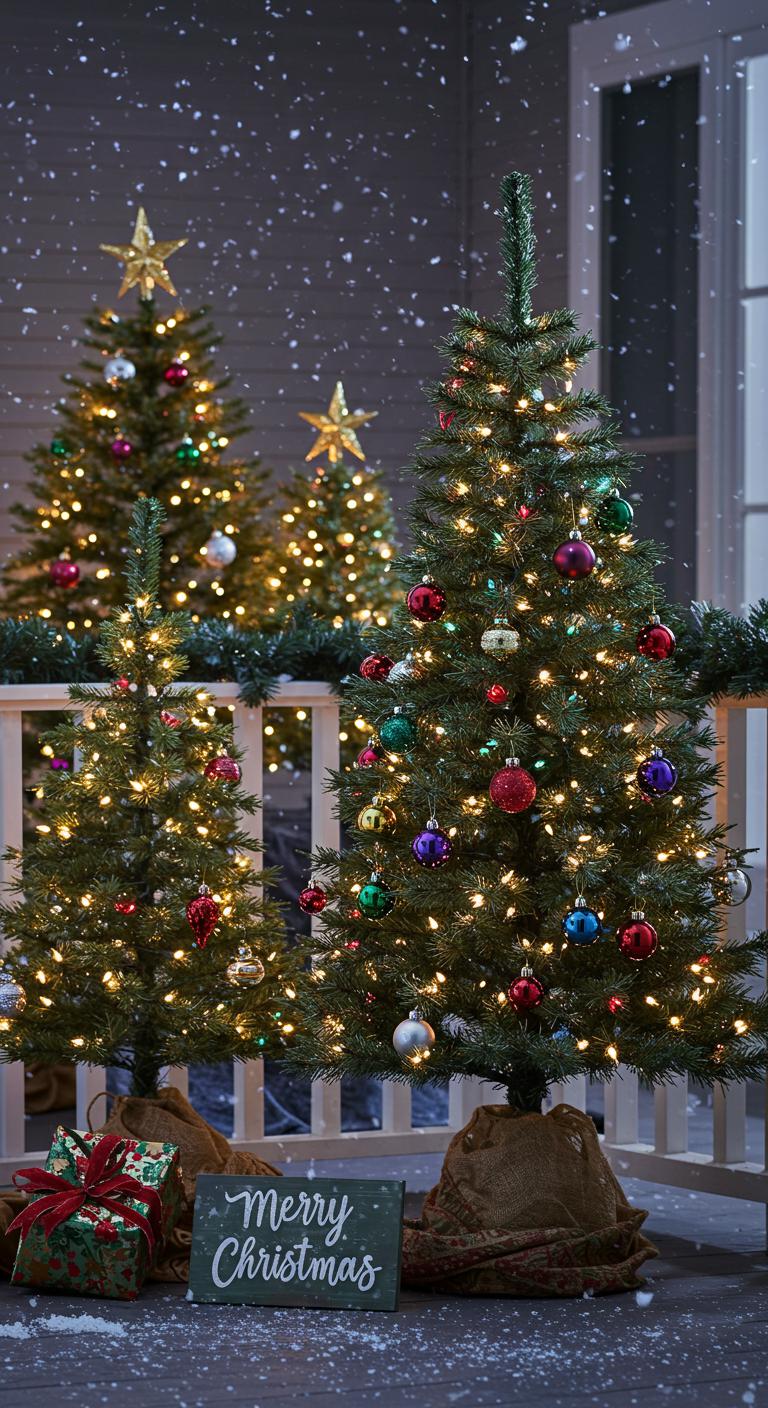 Opt for pre-lit Christmas trees as your porch centerpiece. Place them in decorative pots or baskets. These trees require minimal effort yet provide maximum impact. Choose trees of different heights for visual interest. Ensure durability with weather-resistant materials. If you’re short on time, grab a few from local retailers. They come in a variety of sizes and colors, making it easy to find the perfect fit.