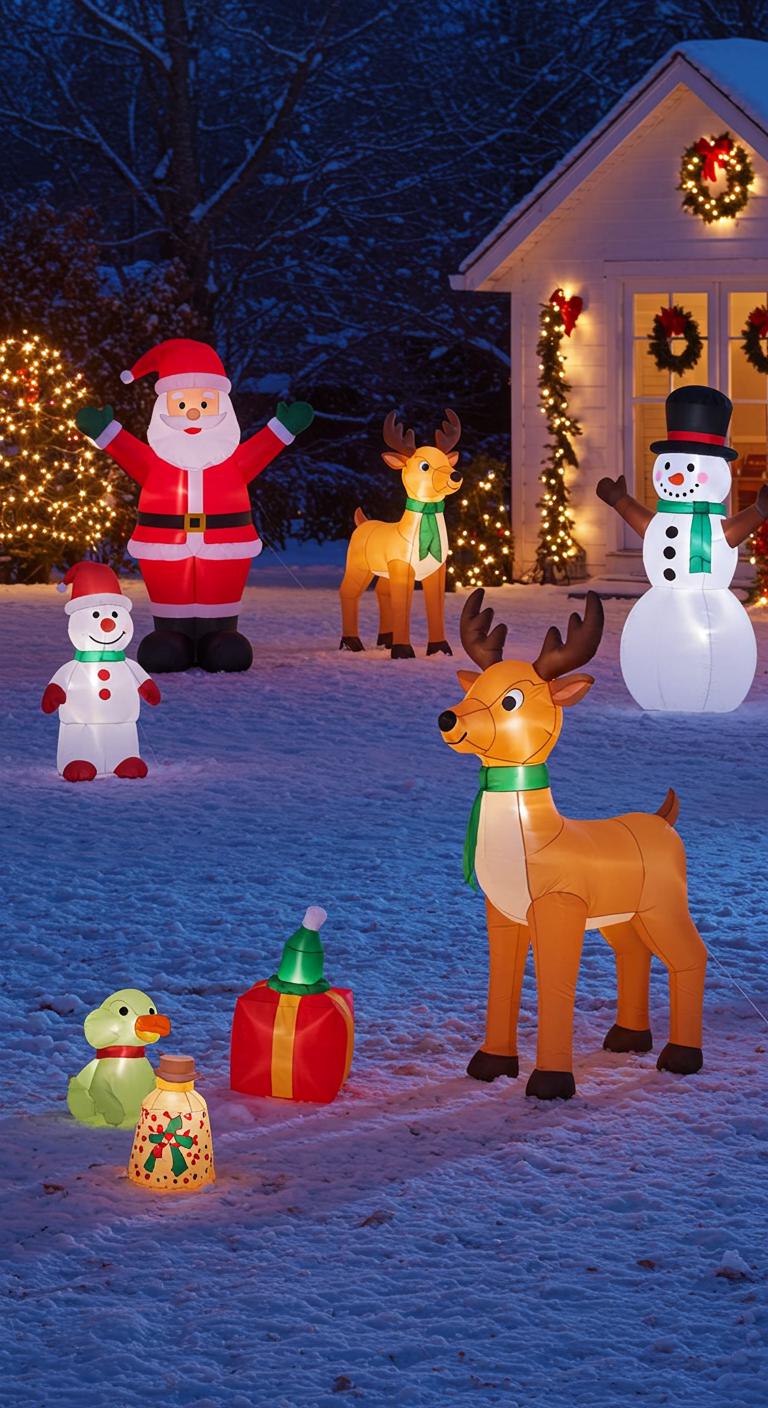 Set up inflatable decorations for a playful touch. Choose festive characters like Santa or snowmen that inflate in seconds. These designs are typically low maintenance and add charm to your porch and yard. Find affordable options at local stores or online. Just ensure you have access to a power source since they need to be plugged in. They will brighten your home during nighttime gatherings.