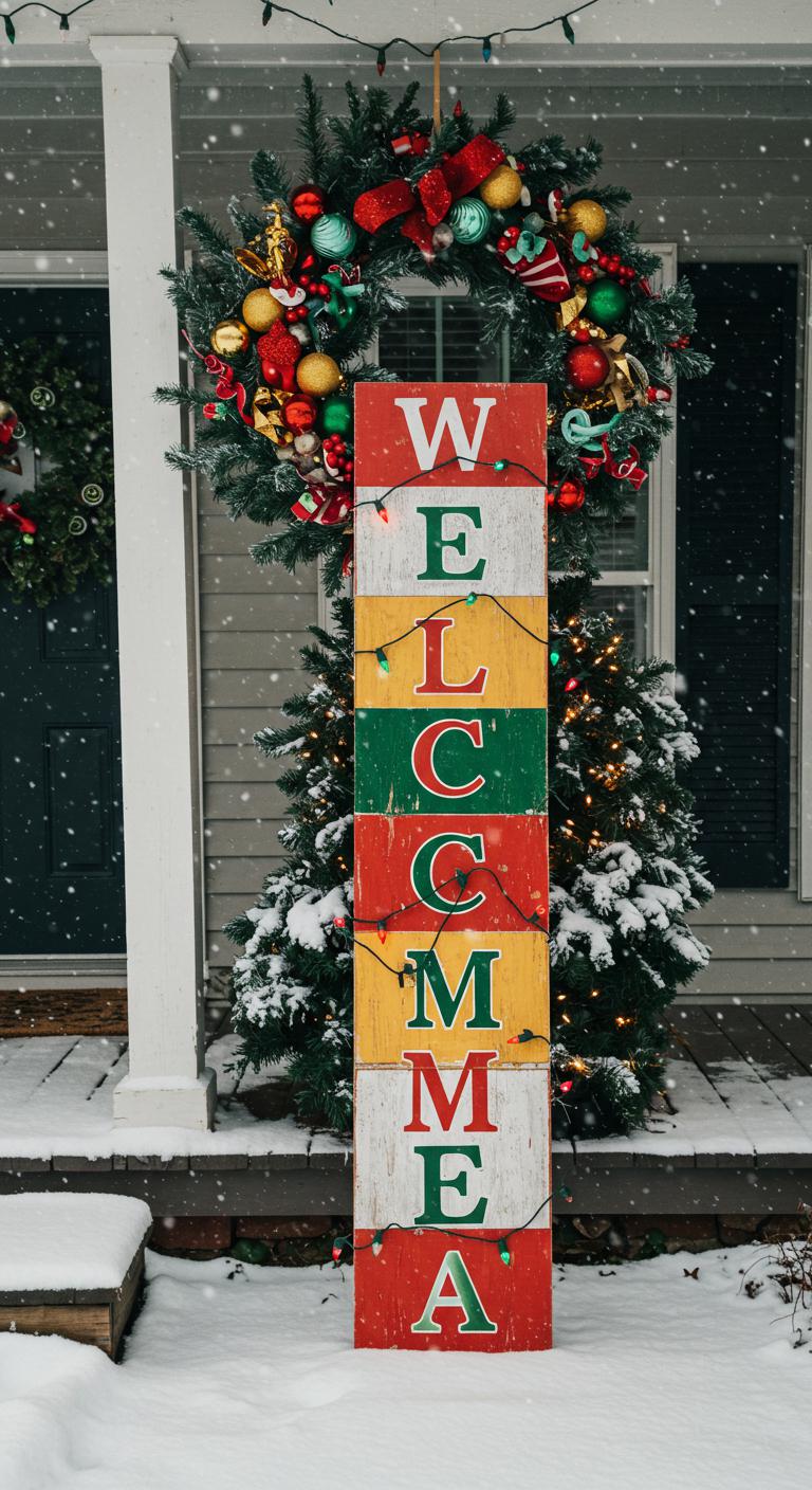Make a large sign for your porch to welcome guests. Use plywood for a sturdy base and paint it with seasonal greetings. Add lights for an eye-catching touch, particularly at night. Secure the sign on the porch or near the entrance for maximum visibility. If you’re on a budget, take advantage of scrap wood or discounts from local hardware stores.