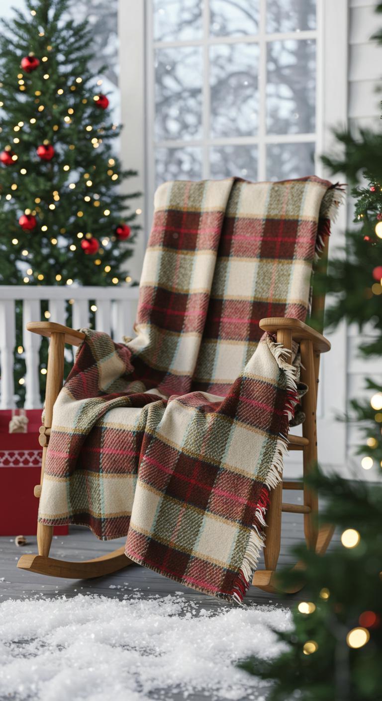 Incorporate cozy blankets and throws for both warmth and style. Choose textures that complement your porch decor. Drape them over chairs or pillows as a warm invite for guests. Use colors that align with your holiday theme, whether traditional reds and greens or a modern palette. It’s a great, affordable way to enhance comfort while adding to visual charm.