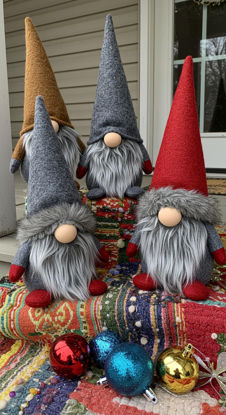 Create Christmas gnomes to add a playful touch. Craft them from yarn, fabric, and other supplies you may have at home. Use old socks for bodies and faux fur for beards—easy and fun! Place them around your porch to spread cheer. These little characters are a fun project for families, allowing everyone to participate. Invite the kids to get creative with their designs.