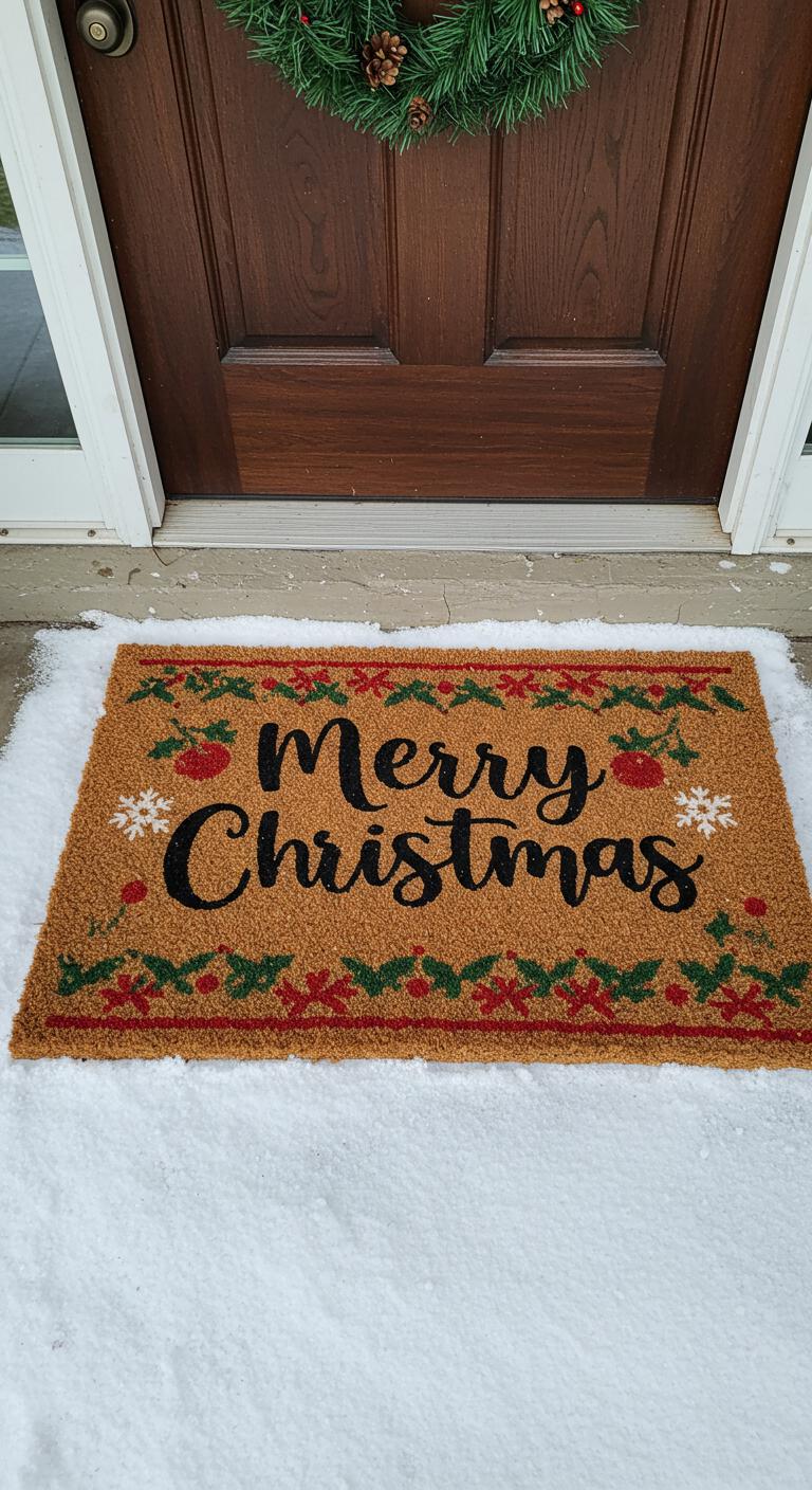 Don’t forget a seasonal doormat! Choose one with cheerful holiday greetings or designs to welcome visitors. It’s an easy decor update that adds color to your entrance. Opt for durable outdoor mats to withstand winter conditions. It’s a small yet impactful detail that can set the tone for the holiday spirit just before guests step inside.