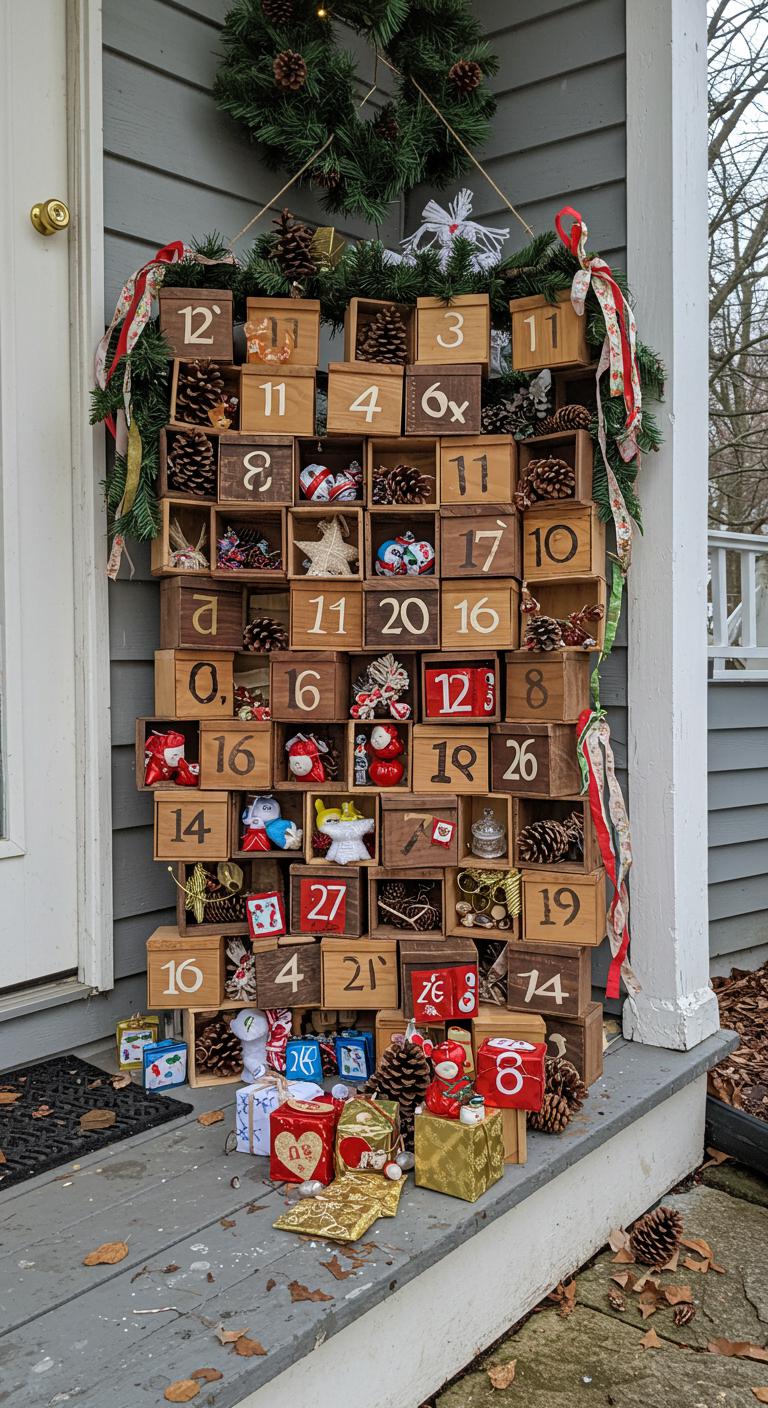 An interactive advent calendar can add fun. Create one from small drawers or boxes and fill them with treats leading up to Christmas. Display it prominently on your porch for all to see. Invite family and guests to enjoy the surprises daily. This project encourages creativity, making it a delightful way to count down the days together!