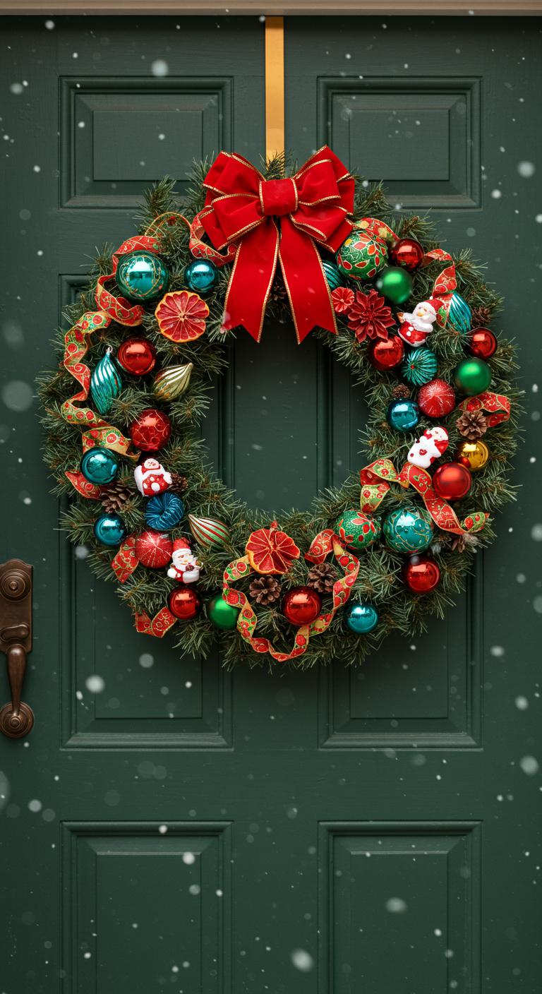 Create a colorful wreath for your front door. Use a foam or wire base and attach ornaments, ribbons, and greenery for a lively look. Choose a mix of vibrant colors for a playful effect or stick with traditional hues for classic appeal. Consider using an old wreath base to save costs. This simple craft is perfect for a personalized centerpiece to greet all holiday visitors.