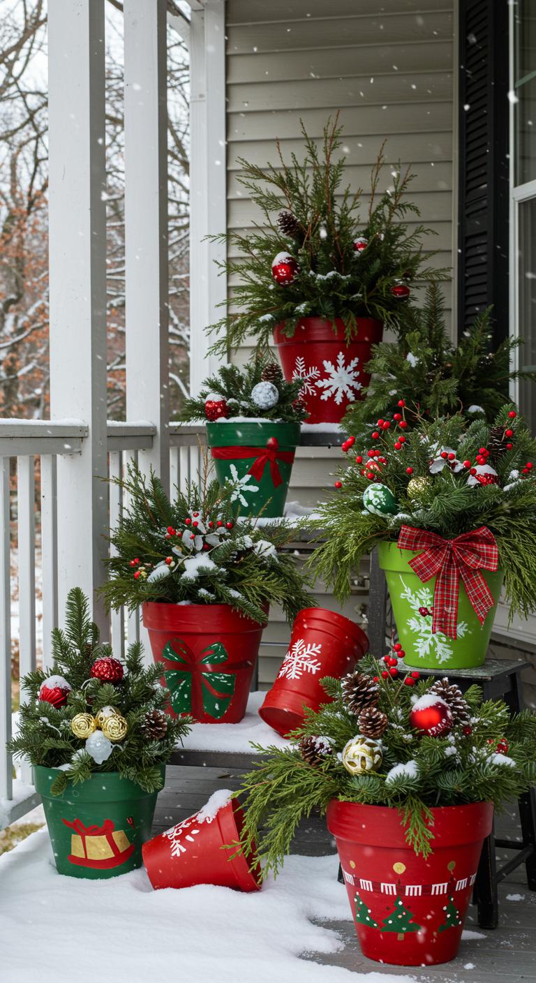 Transform old garden pots into festive decor. Paint them festive colors, and fill them with seasonal greenery. Add ribbons and ornaments for extra charm. Group the pots near your entrance for a welcoming vibe. This project is budget-friendly—you can even use leftover paints lying around the house. It’s a practical way to breathe new life into old items while enhancing your holiday decor.