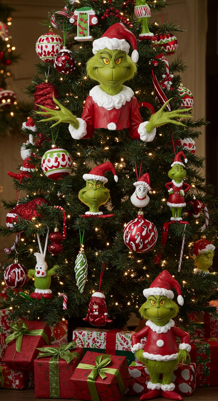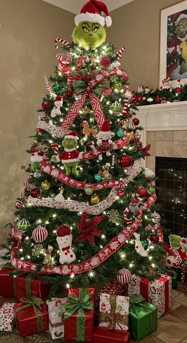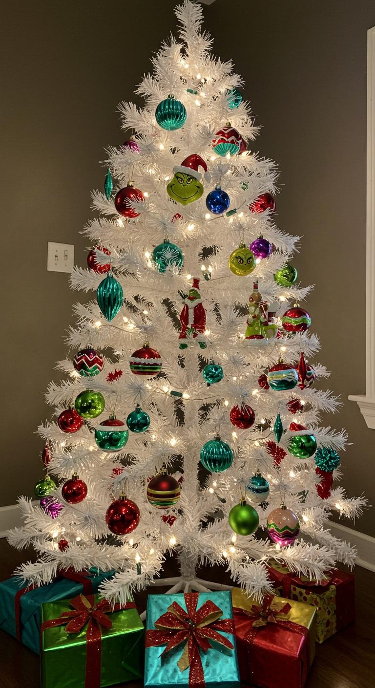 Consider a white Grinch tree to contrast against vibrant decorations. This unique twist allows colors to stand out beautifully. Add colorful ornaments and decorations for maximum effect. The white background brings a fresh and modern vibe. DIY Tip: Spray-paint an old green tree white to create this effect—perfect for a budget!