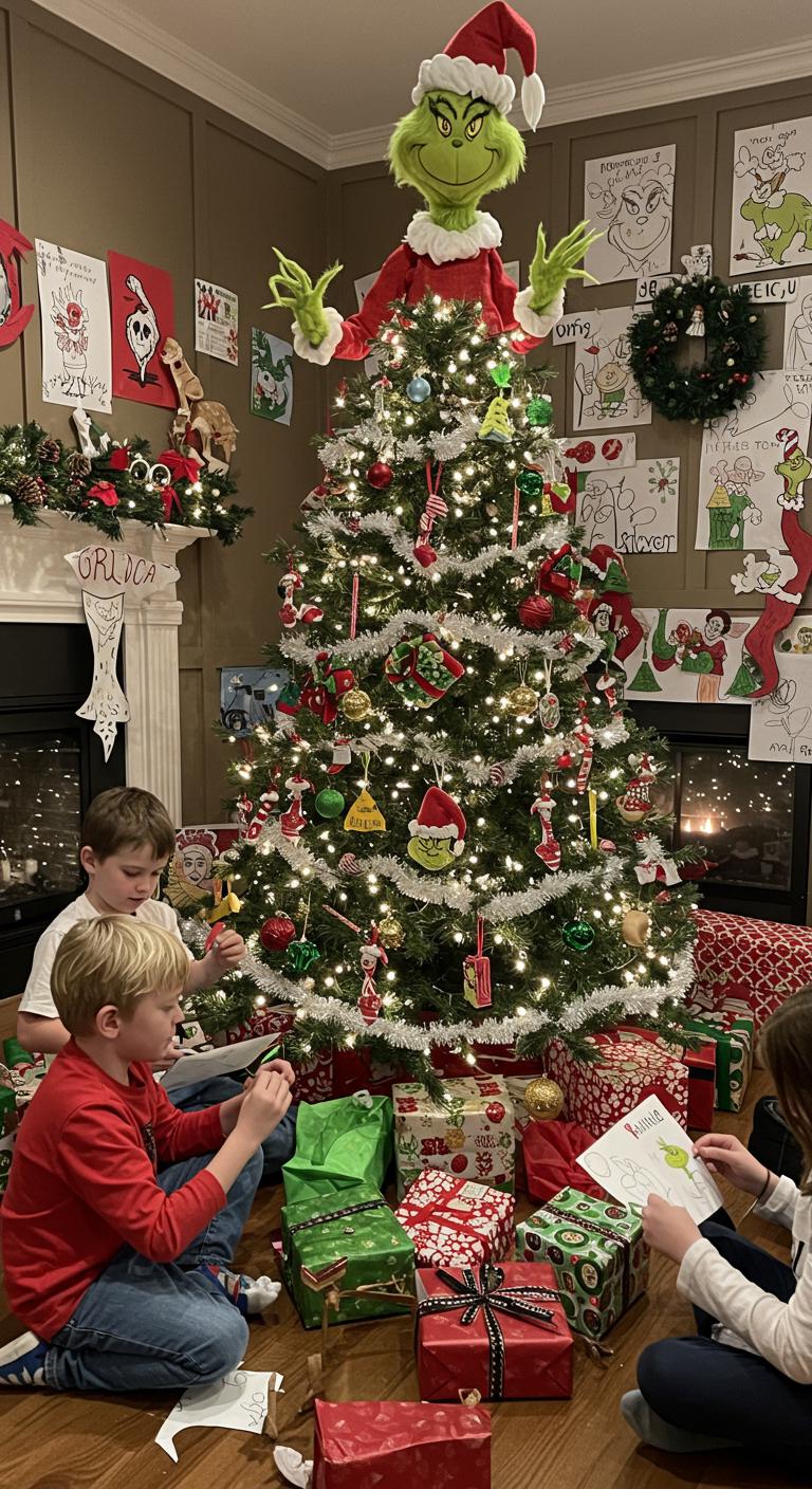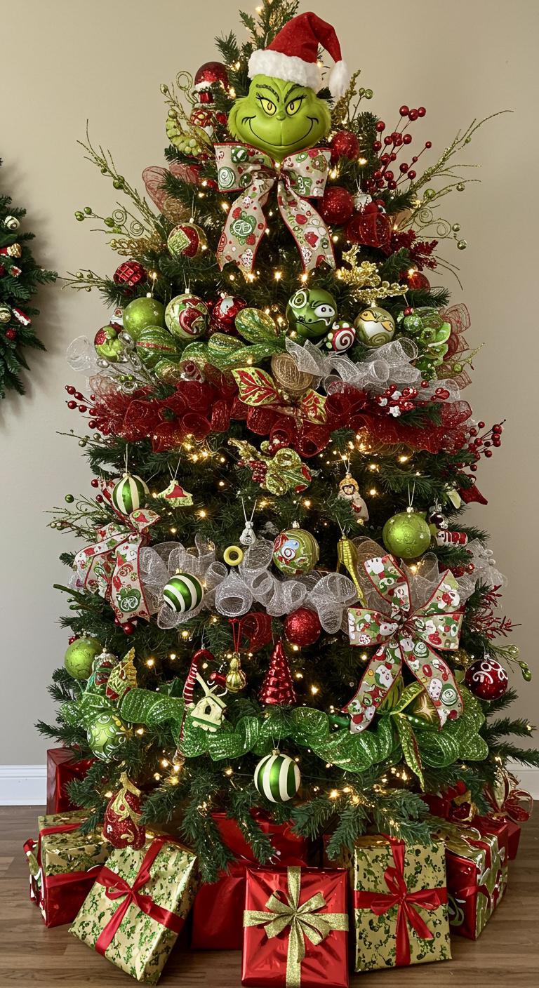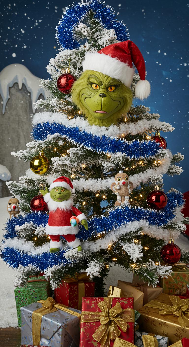 Consider a white Grinch tree to contrast against vibrant decorations. This unique twist allows colors to stand out beautifully. Add colorful ornaments and decorations for maximum effect. The white background brings a fresh and modern vibe. DIY Tip: Spray-paint an old green tree white to create this effect—perfect for a budget!