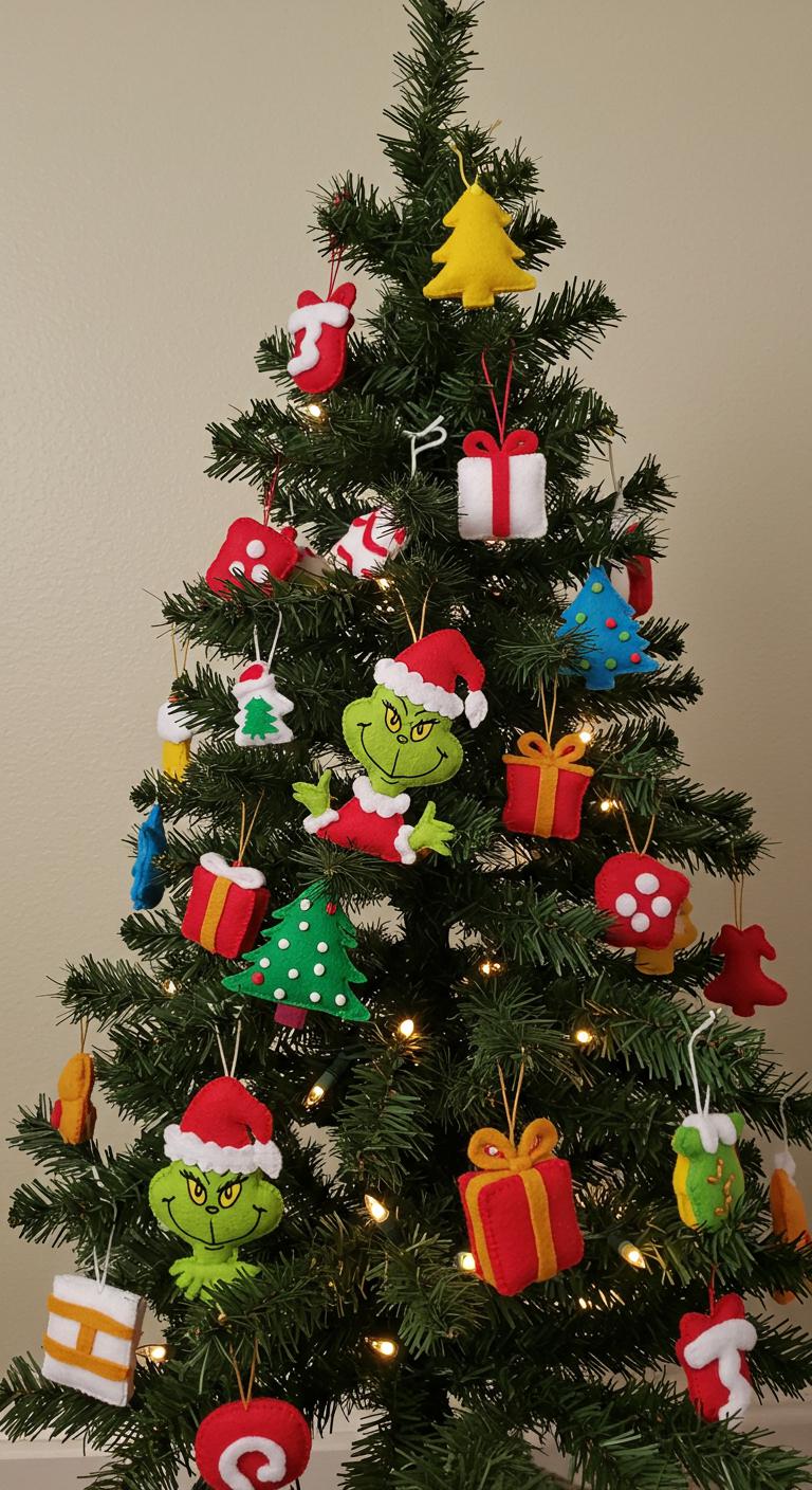 Handcrafted felt ornaments offer a lovely, tactile touch and are extremely easy to make. Design simple Grinch-themed shapes or traditional Christmas icons like stars and trees. With a little fabric and glue, you create something whimsical that sets your tree apart. Budget Tip: Use scrap fabric to minimize costs while promoting creativity.
