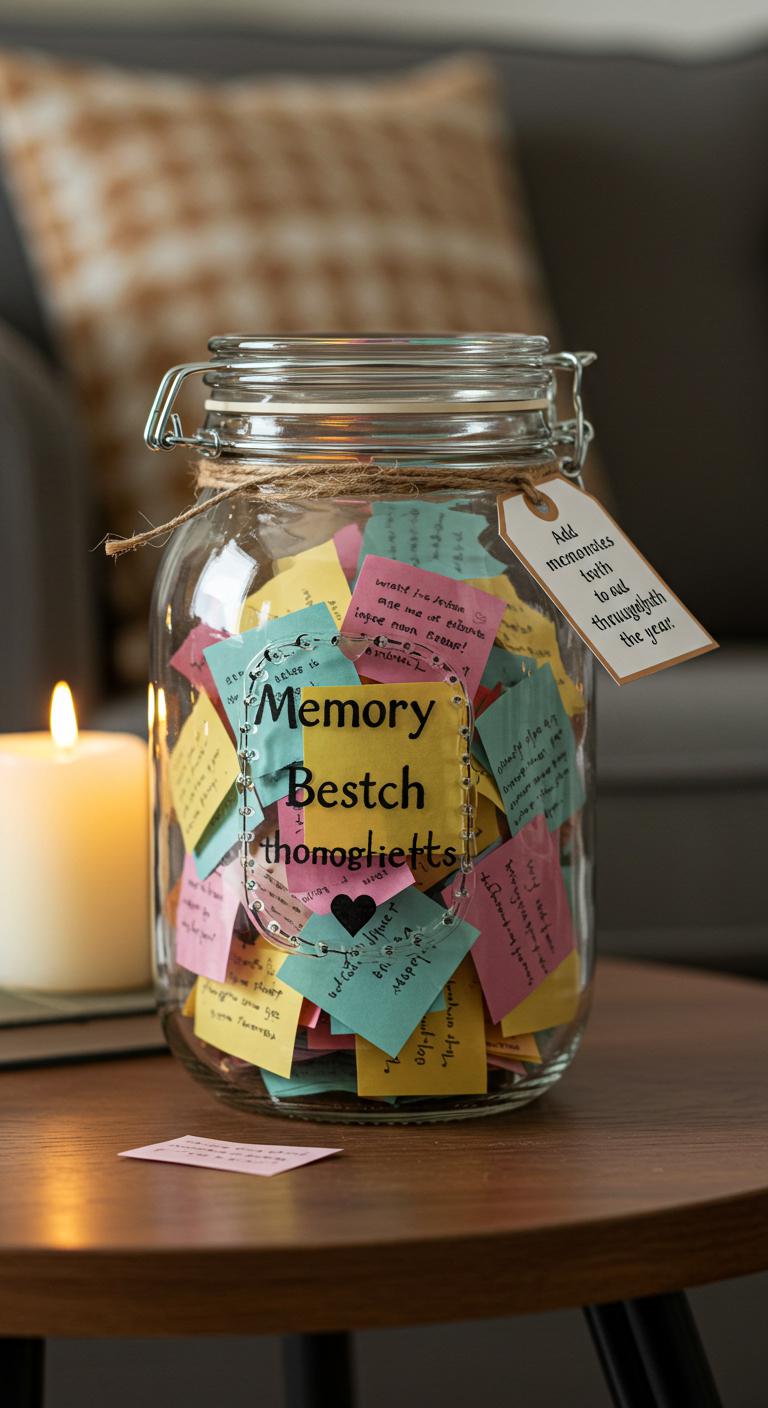 Create a memory jar for sharing experiences throughout the year. Use a simple glass jar and decorate it with ribbons or paint. Provide your friends or family with small pieces of colored paper and pens. Encourage them to write down significant moments, funny anecdotes, or dreams. As the year progresses, the jar fills up with cherished memories waiting to be opened at the end of the year. It’s a beautiful way to build connection and reminisce on shared experiences.