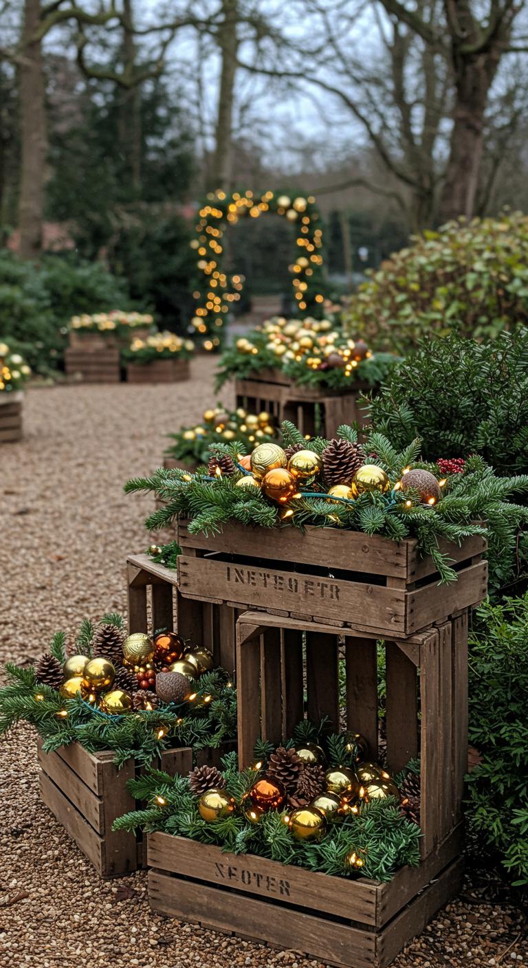 Use rustic crates to create stunning displays! Stack wooden crates, alternating orientations for visual interest. Fill them with greenery, vintage ornaments, or wrapped presents. Use LED fairy lights to wrap around the crates, creating a magical glow. This is a versatile way to showcase your style and can easily be customized for each season.