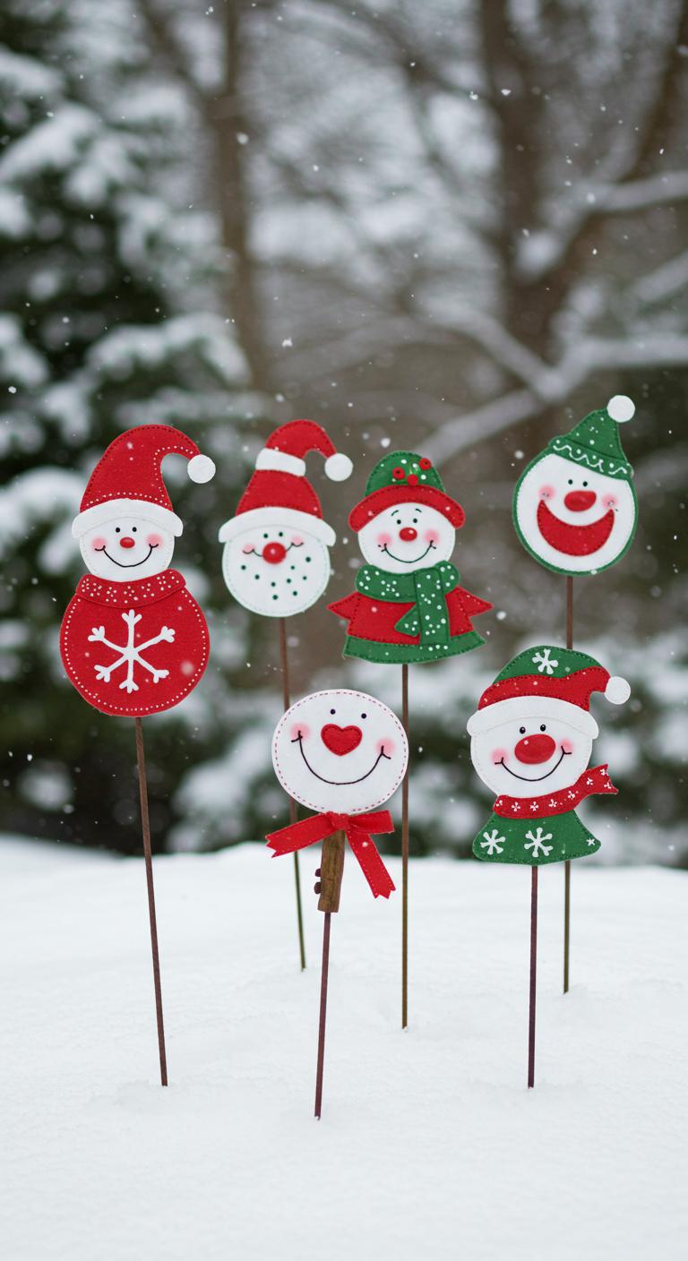 Create adorable Christmas penguins for a playful outdoor scene. Use old light bulbs or stones for the body. Paint them black and white, and use felt or fabric to craft scarves. Add painted eyes and whimsical beaks for character. Position them around your garden or on porches for cheerful decor that’s sure to warm hearts!