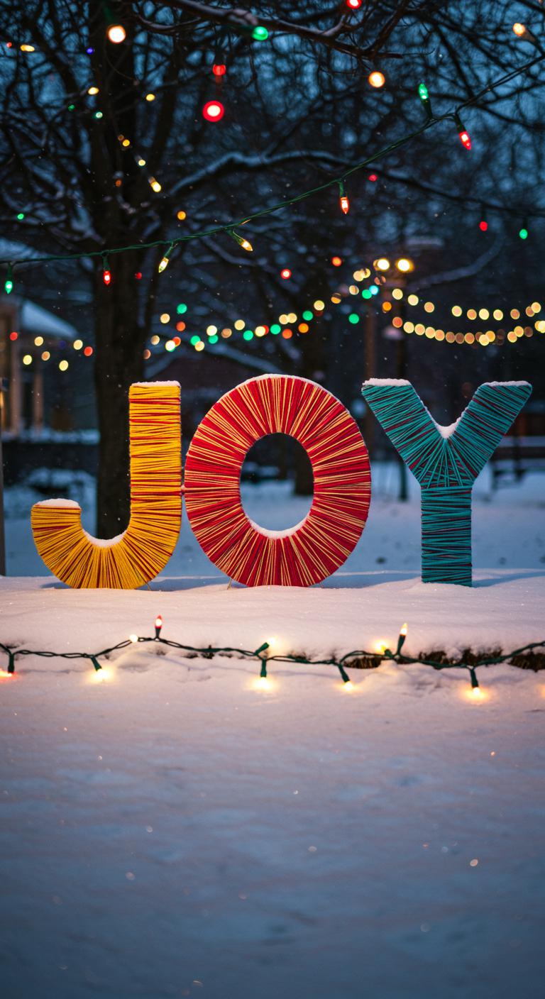 Create yarn-wrapped letters for an inviting holiday display! Choose letters that spell out a festive greeting, like “JOY” or “NOEL”. Wrap them in colorful yarn—either matching your color theme or using varied hues for a fun touch. Incorporate fairy lights around the letters or use them as table decorations on your porch. These letters infuse joy and a personal touch into your outdoor celebrations.