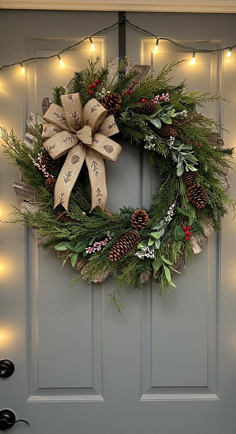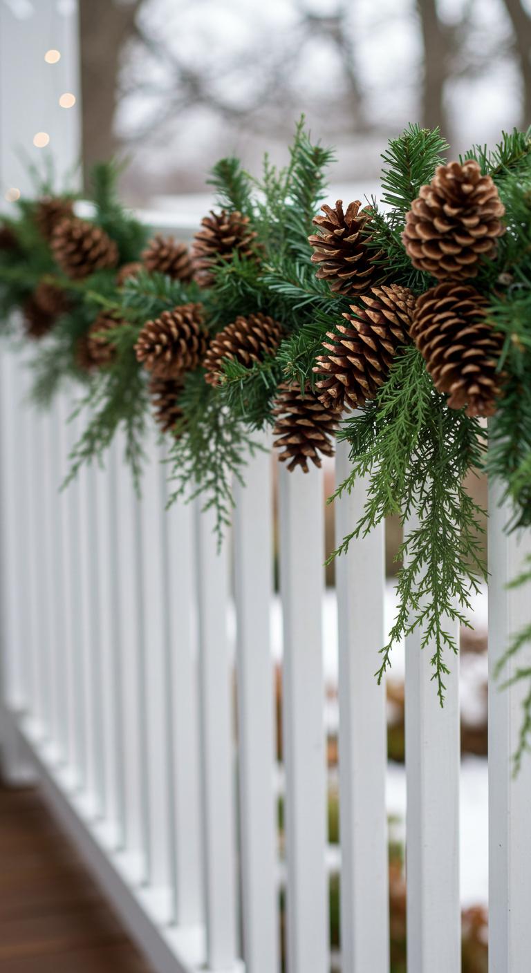 Add warmth to your outdoor space with pinecone garlands. Collect pinecones from your yard or local park. String them together using twine or wire, alternating with dried fruits or greenery. Drape these garlands across your porch, railing, or even along your entryway for a rustic touch. Their natural beauty ties in seamlessly with winter themes.