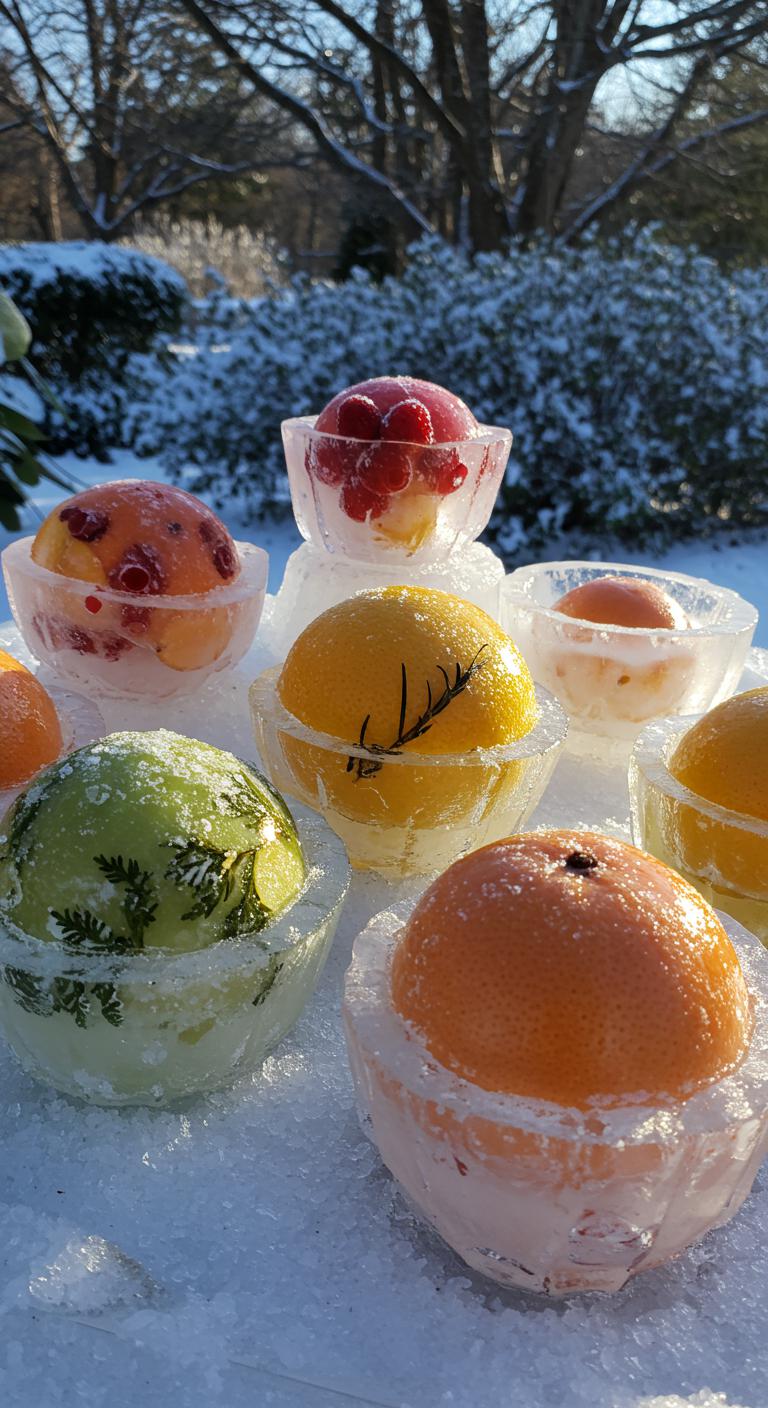 Capture nature’s beauty with ice ornaments. Use molds to freeze colorful mixtures of water, fruits, or herbs. Add some twine for hanging before the water freezes completely. Once solid, hang these lovely creations from branches or around your garden. As they glimmer in the sunlight, they provide enchanting seasonal décor that melts into memories!