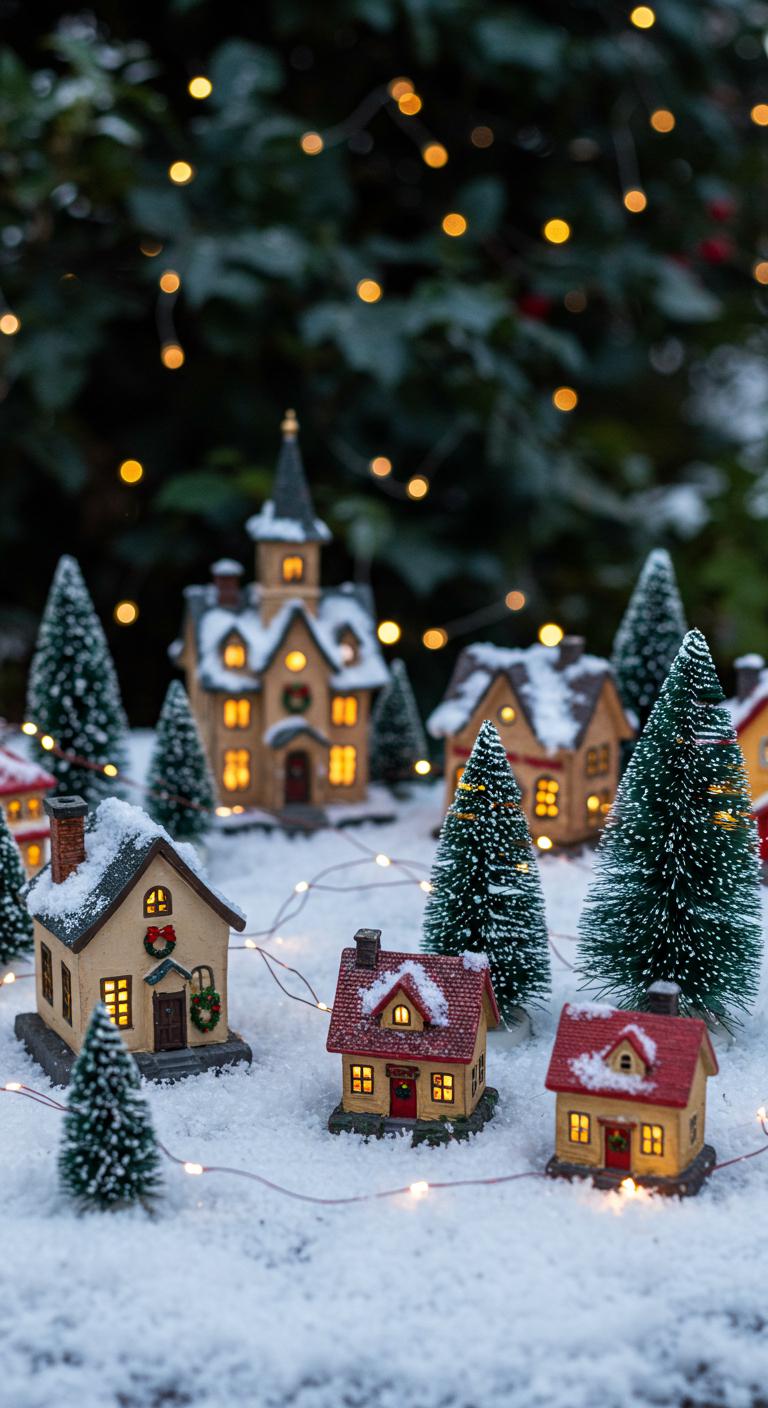 Create a mini outdoor village using small DIY houses. Craft them from cardboard or wood and paint them in festive colors. Arrange them amongst your garden or on a table. Use small LED lights for added enchantment. This little scene serves as a conversation starter and brings warmth and holiday cheer to any outdoor space.