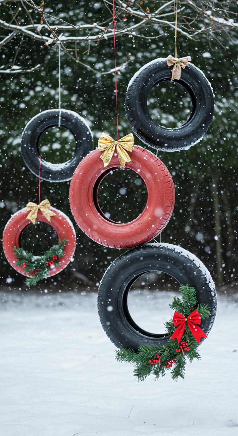 Turn old tyres into festive ornaments with ease! Begin by cleaning and painting the tyres in bright holiday shades. Add glitter or decorative ribbons to enhance the festive feel. You can stack smaller tyres to form a unique snowman, or hang them on trees for a whimsical touch. Place these creative decorations around your yard to provide playful pops of color as the snow falls.